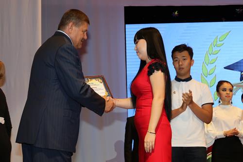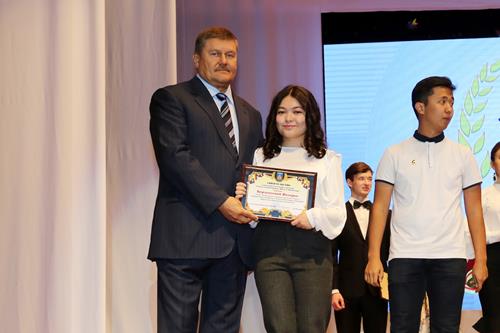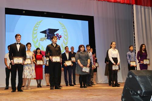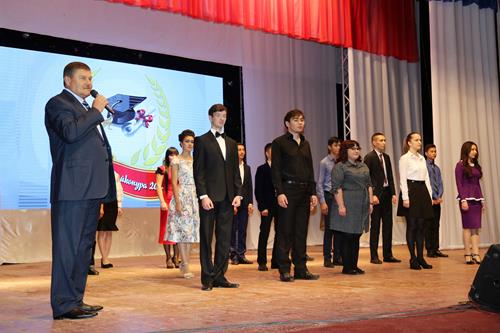 Далее в большом зале ГДК состоялась торжественная церемония вручения ежегодных именных стипендий Главы администрации «Юность Байконура» 20 студентам профессиональных образовательных организаций.