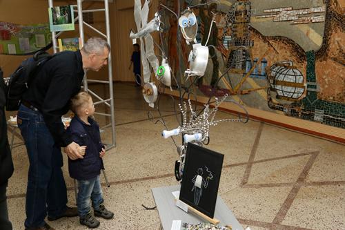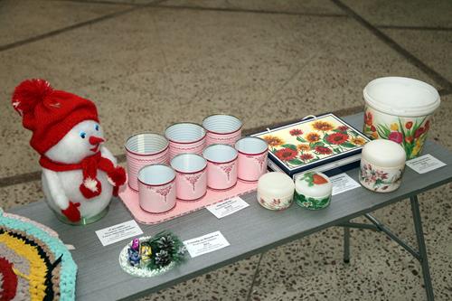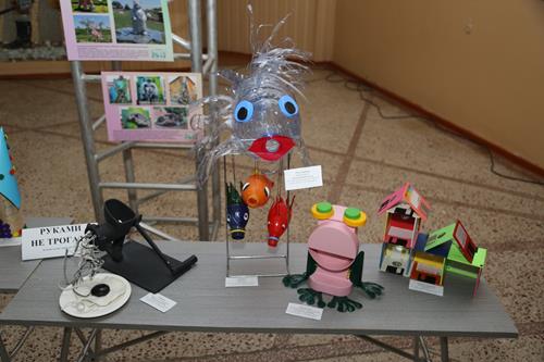 Перед торжественным мероприятием гостям Дворца культуры было предложено ознакомиться с книжно-иллюстрированной выставкой, представленной сотрудниками ГБУ ЦБС, и творческими работами, изготовленными из бросового материала и вторичного сырья. Авторы этих необычных работ - воспитанники кружка «Мир увлечений» (ЦГБ), а также мастерицы студии живописи «Мечта» (ГБУ ГДК).