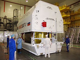 Выполнены работы по осмотру космического аппарата после транспортировки, а также проведен анализ телеметрической информации условий транспортировки. Космический аппарат подготовлен к стыковке с разгонным блоком «Фрегат-СБ».