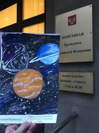 На днях часть рисунков байконурских школьников, принявших участие в акции «Запуск первого искусственного спутника Земли глазами детей Байконура!», была передана в приемную президента Российской Федерации Владимира Путина.