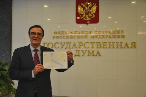 Депутат Государственной Думы России Александр Максимов направил благодарственные письма в адрес директора средней школы №1 города Байконура Оксаны Гузиковой за организацию и проведение акции, и двум школьникам, чьи рисунки были переданы депутату - ученику 1Б класса средней школы №4 Михаилу Плаксину и ученику 3Б класса средней школы №273 Алибеку Сагатбекову.