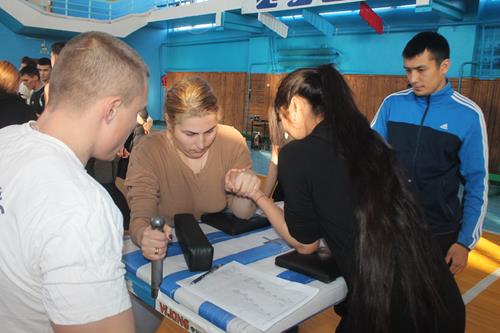 Несмотря на то, что армрестлинг считается истинно мужским по духу видом спорта, в соревнованиях приняли участие и девушки, которые также продемонстрировали хорошую борьбу на руках. Абсолютным чемпионом среди девушек стала А.Кульбай (на правую и левую руки), 2 место заняла С.Жузен (на правую и левую руки), 3 место – З.Лапина (на правую руку) и В.Прохорова (на левую руку).