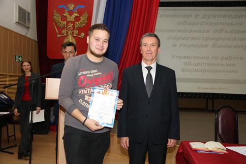 01 декабря 2017 г. Управлением по работе с общественными формированиями проведен семинар с руководителями и членами общественных и религиозных объединений на тему «Деятельность общественных и религиозных объединений в городе и их участие в решении социально значимых вопросов на основе взаимодействия с органами государственной власти и местного самоуправления».