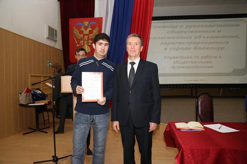 1. За активную жизненную позицию и эффективную работу по развитию гражданского общества в городе Байконур