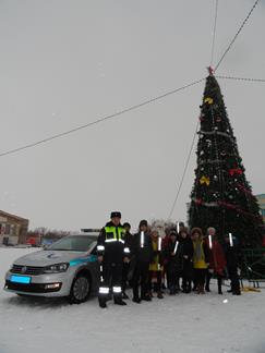 В районе центральной площади сотрудник ОГИБДД в костюме Деда Мороза поздравлял водителей с наступающим Новым годом, вручал им поздравительные открытки и проводил разъяснительные беседы о необходимости неукоснительного соблюдения правил дорожного движения. Особое внимание в ходе акции было уделено юным пешеходам, которым инспектор - Дед Мороз объяснял в игровой форме, как правильно переходить проезжую часть, рассказывал предназначении световозвращающих элементов и необходимости их использования. Самые активные участники акции, ответившие на вопросы Деда Мороза о правилах дорожного движения, получили в подарок световозвращающие элементы.