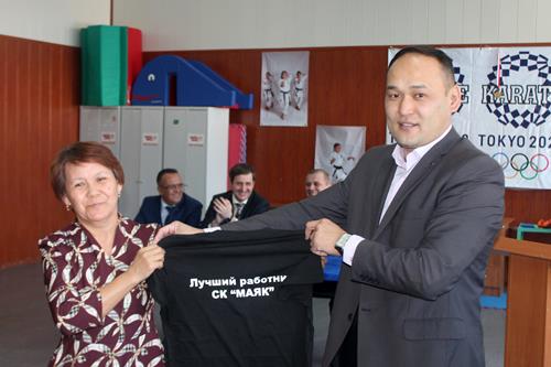 Накануне юбилейной даты в СК «Маяк» состоялось торжественное мероприятие. Сотрудников спорткомплекса с юбилеем поздравили заместитель главы администрации города Николай Адасев и начальник Управления культуры, молодежной политики, туризма и спорта Евгений Гертер. От имени главы администрации Николай Адасев вручил памятные медали «60 лет со дня запуска первого искусственного спутника Земли» заведующему СК «Маяк» Руслану Жакудаеву, сотрудникам спорткомплекса Раисе Веселовской и Марату Нархожаеву. За добросовестный труд и высокий профессионализм, образцовую трудовую деятельность и личный вклад в развитие спортивной базы начальник УКМПТиС Евгениий Гертер наградил почетными грамотами и благодарностями инструкторов ГБУ СОК «Байконур». Заведующий СК «Маяк» Руслан Жакудаев вручил памятные подарки почетным гостям и сотрудникам сооружения.