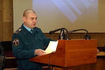 Начальник отдела ФГПН Специального управления ФПС № 70 МЧС России Дмитрий Кандраев осветил состояние пожарной безопасности на территории города в 2017 году. В своем докладе он подчеркнул, что объекты жилого сектора, по-прежнему, остаются основными объектами пожаров, и составляют 50 % от их общего числа. Главными причинами пожаров были названы неосторожное обращение с огнем и неисправности электропроводки.