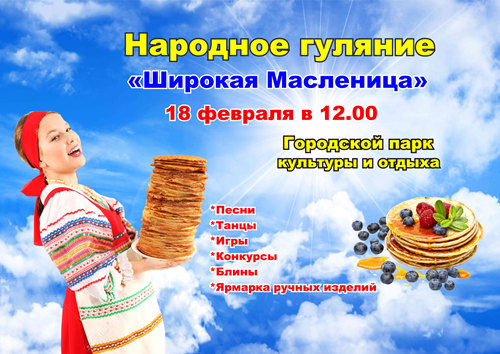 18 февраля. 12.00. Городской парк культуры и отдыха. Театрализованный праздник «Широкая Масленица».