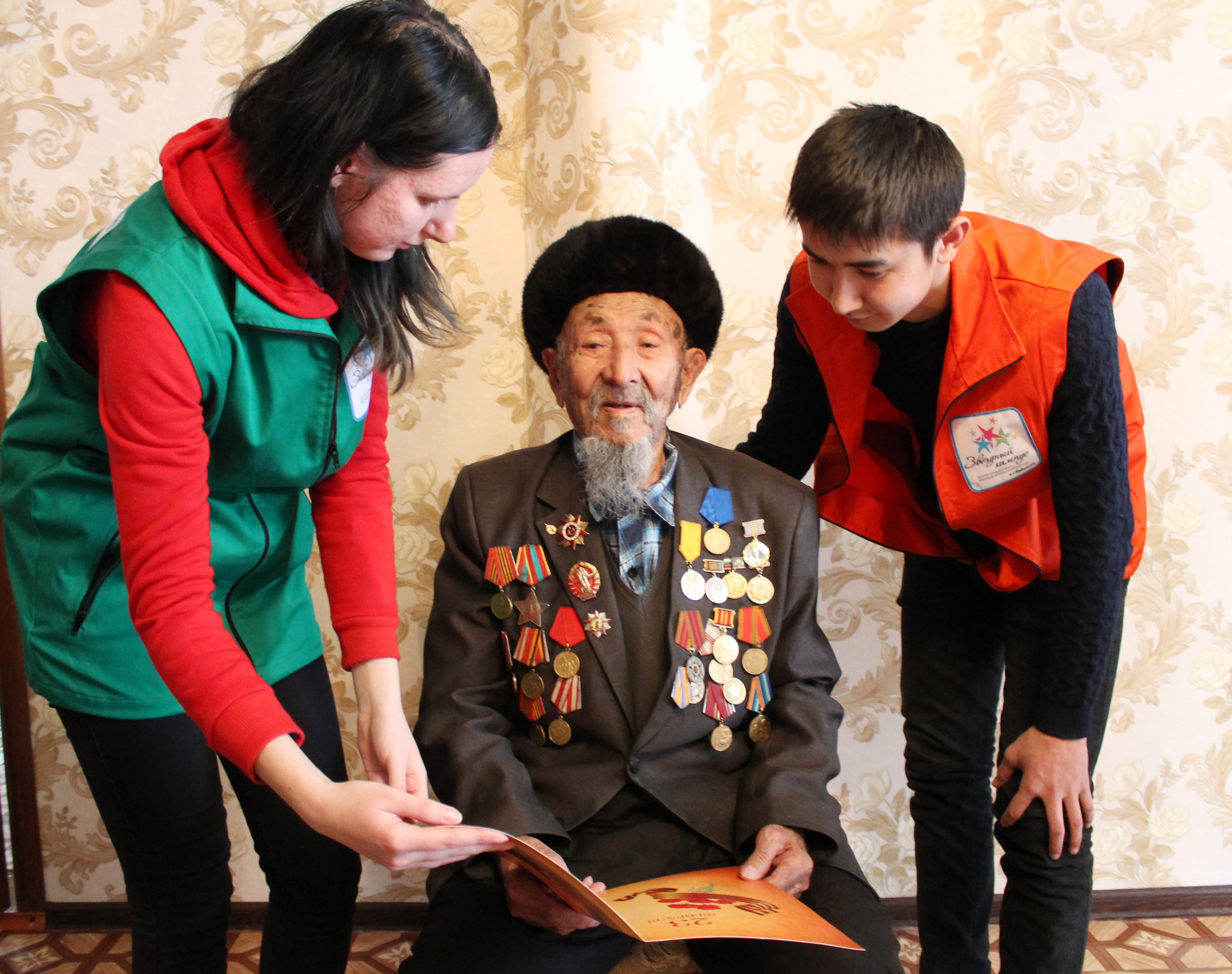 20 февраля, накануне Дня защитника Отечества, волонтеры Центра поддержки молодежных инициатив «Звездный кампус» и добровольческого движения «Молодой Байконур» навестили ветерана Великой Отечественной войны, почетного гражданина города Байконура Калмырзу Жарманова.