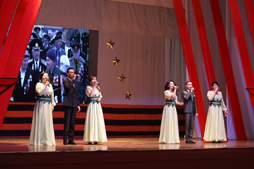 Праздничную атмосферу в ГДК создавал эстрадно-духовой оркестр. В фойе члены регионального отделения Общероссийской организации «ОФИЦЕРЫ РОССИИ» на комплексе «Байконур» организовали выставку макетов оружия времен Великой Отечественной войны. Члены добровольного студенческого спасательного отряда «Вымпел» электрорадиотехнического техникума представили военную форму разных лет.