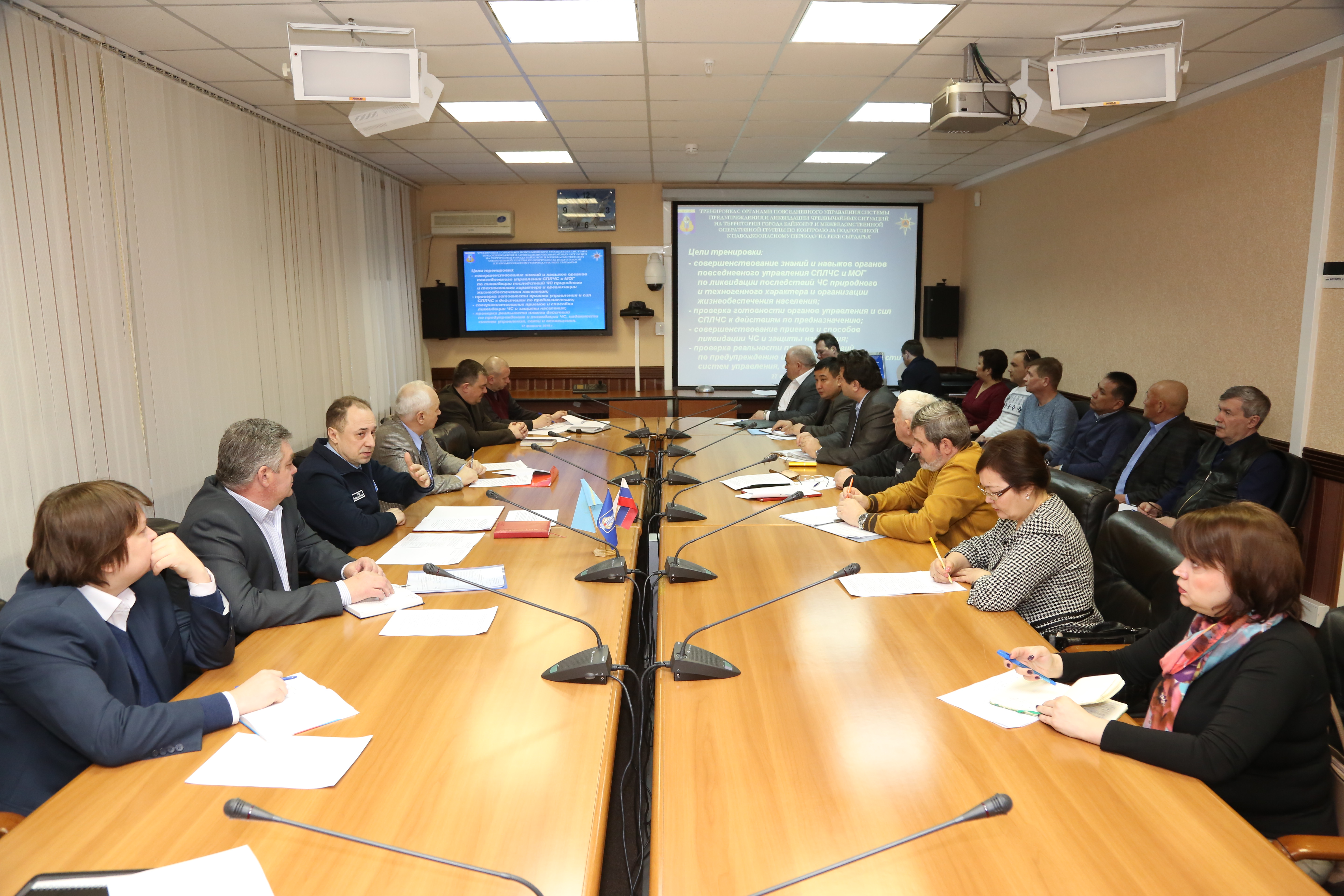 27 февраля в администрации города Байконура состоялась тренировка работников органов повседневного управления системы предупреждения и ликвидации чрезвычайных ситуаций (СПЛЧС) на территории города Байконура и членов межведомственной оперативной группы по контролю за паводковой обстановкой на реке Сырдарье (МОГ).