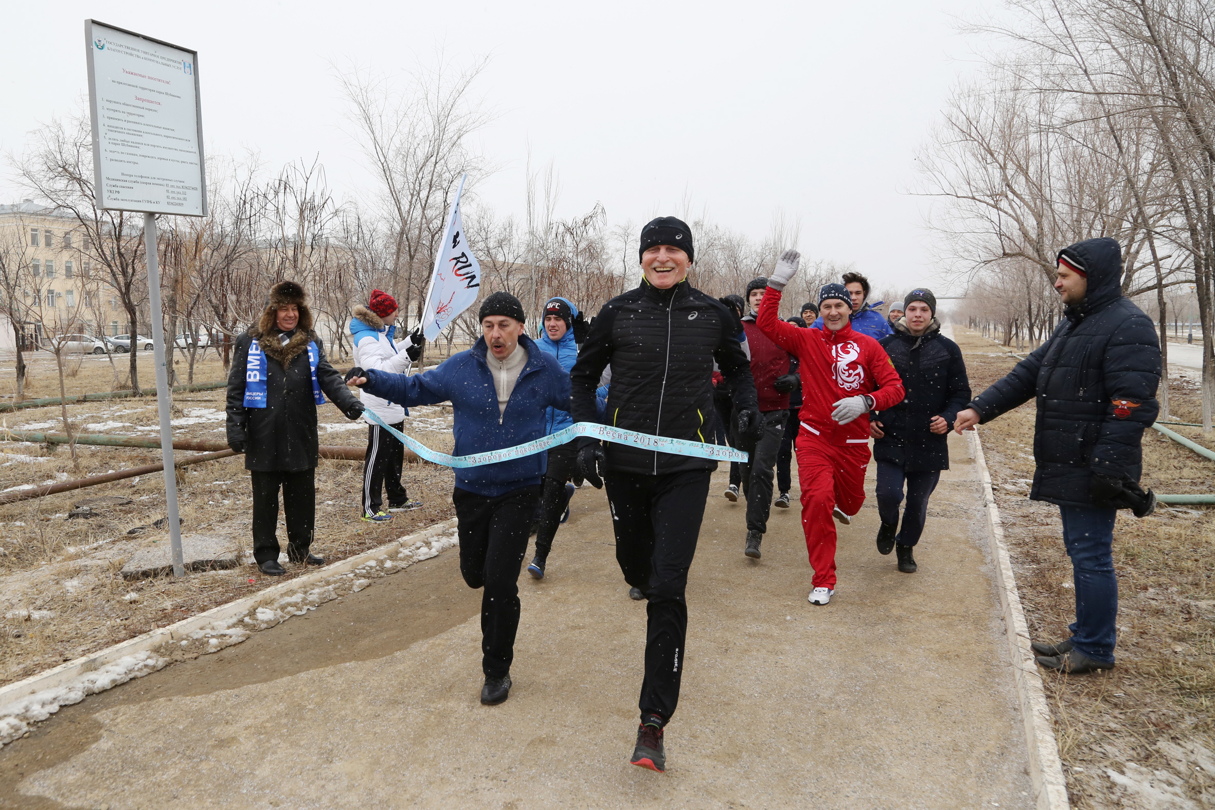 В связи с начавшимся снегопадом дистанция для забега была уменьшена с 10 км до 4 км. Возглавили колонну бегущих Николай Годованюк, Виктор Лопаткин и военный комиссар города Байконура Николай Придворов. Всю дистанцию спортсмены прошли с небольшой скоростью, поскольку забег не имел соревновательного характера, и финишировали практически в полном составе.
