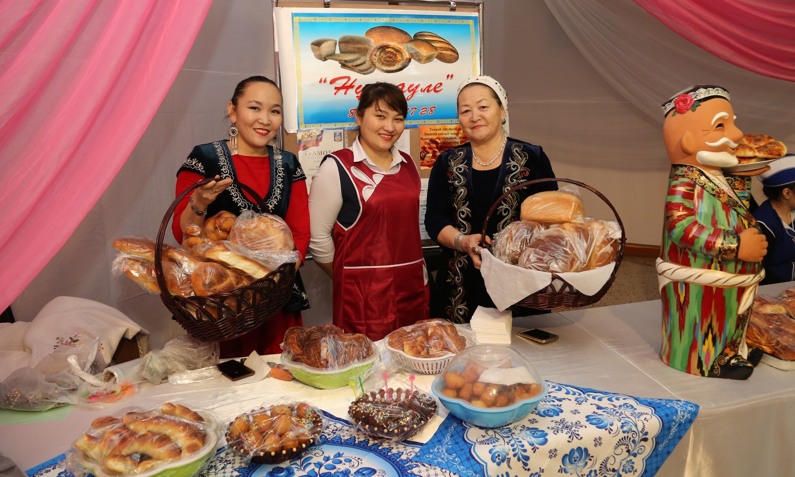 Также на выставке горожане могли приобрести хлебобулочные и кондитерские изделия производства мини-пекарни «Нурсауле» (ИП Серикбай Кенжебаев), кафе «Восток» (ООО «Восток+», генеральный директор Марал Калданова), кондитерского цеха «Жанар» (ИП Гульнар Абдрахманова).