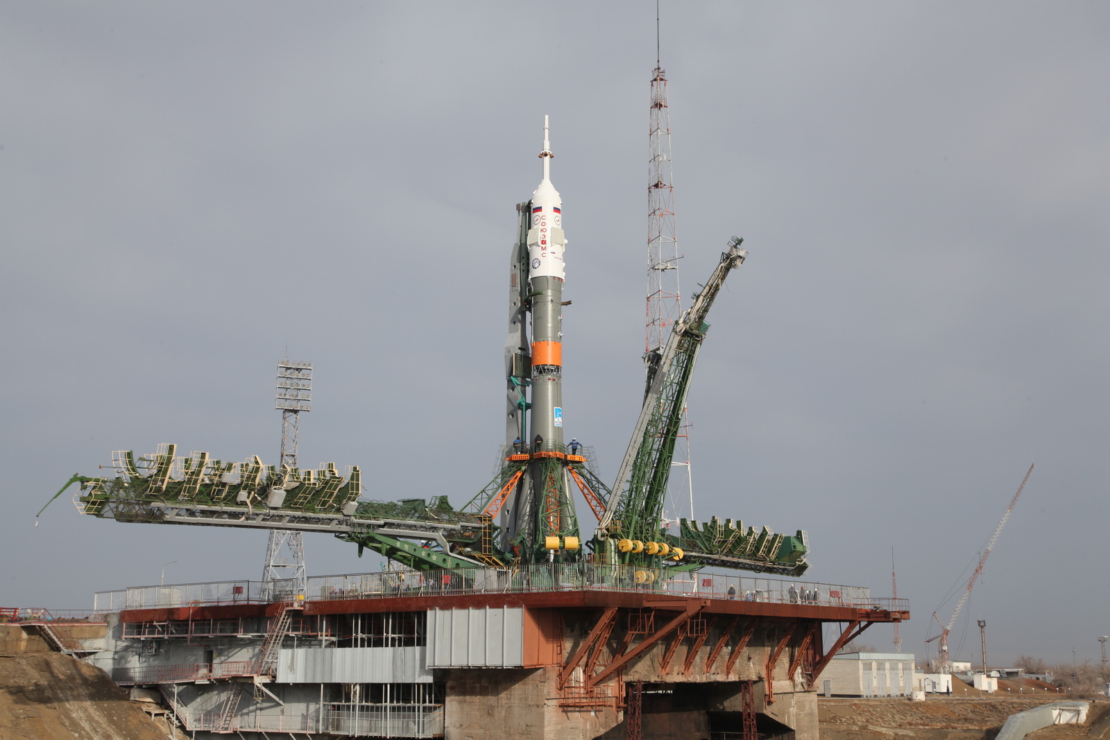 По сообщению Роскосмоса, 19 марта специалисты предприятий РОСКОСМОСА на космодроме Байконур осуществили вывоз на стартовый комплекс и установку в пусковую систему ракеты космического назначения в составе ракеты-носителя (РН) «Союз-ФГ» и транспортного пилотируемого корабля (ТПК) «Союз МС-08».