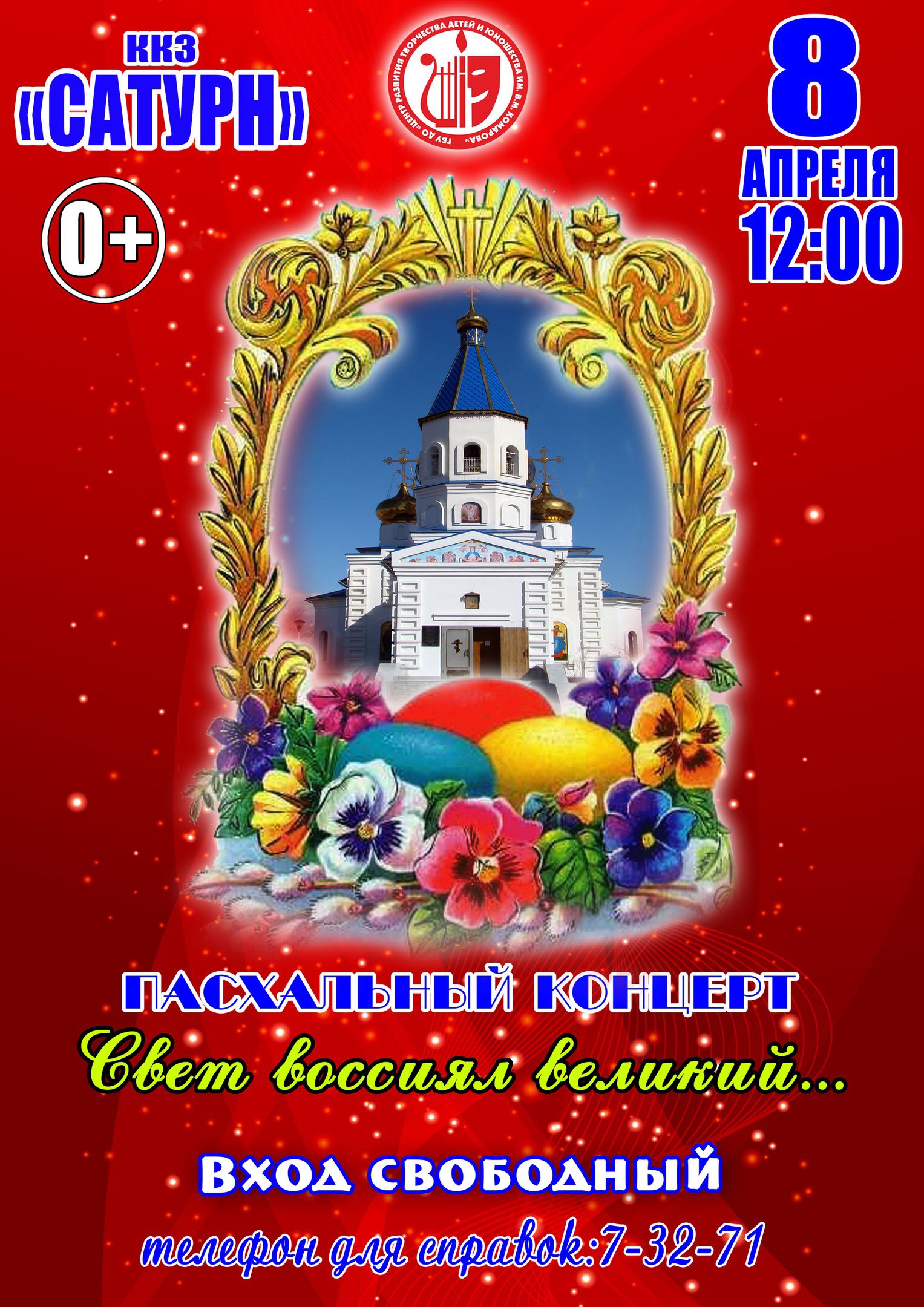 8 апреля. 12:00. ККЗ «Сатурн». Пасхальная концертная программа «Свет воссиял великий…» (ЦРТДиЮ совместно с Храмом Святого Великомученика Георгия Победоносца).