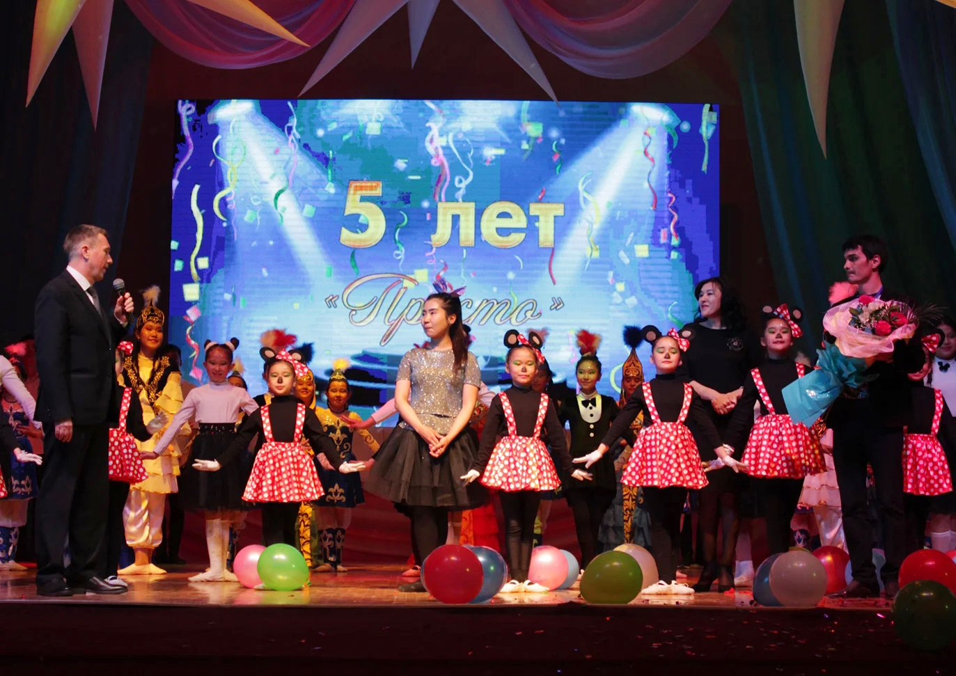 Жанна Ким вручила коллективу грамоту «За плодотворную творческую деятельность и в честь пятилетия со дня образования» от начальника Управления культуры, молодежной политики, туризма и спорта, а также диплом «За вклад в хореографическое искусство, поддержку детского и молодежного творчества», который традиционно вручается всем, кто отмечает свой юбилей на сцене ГДК.