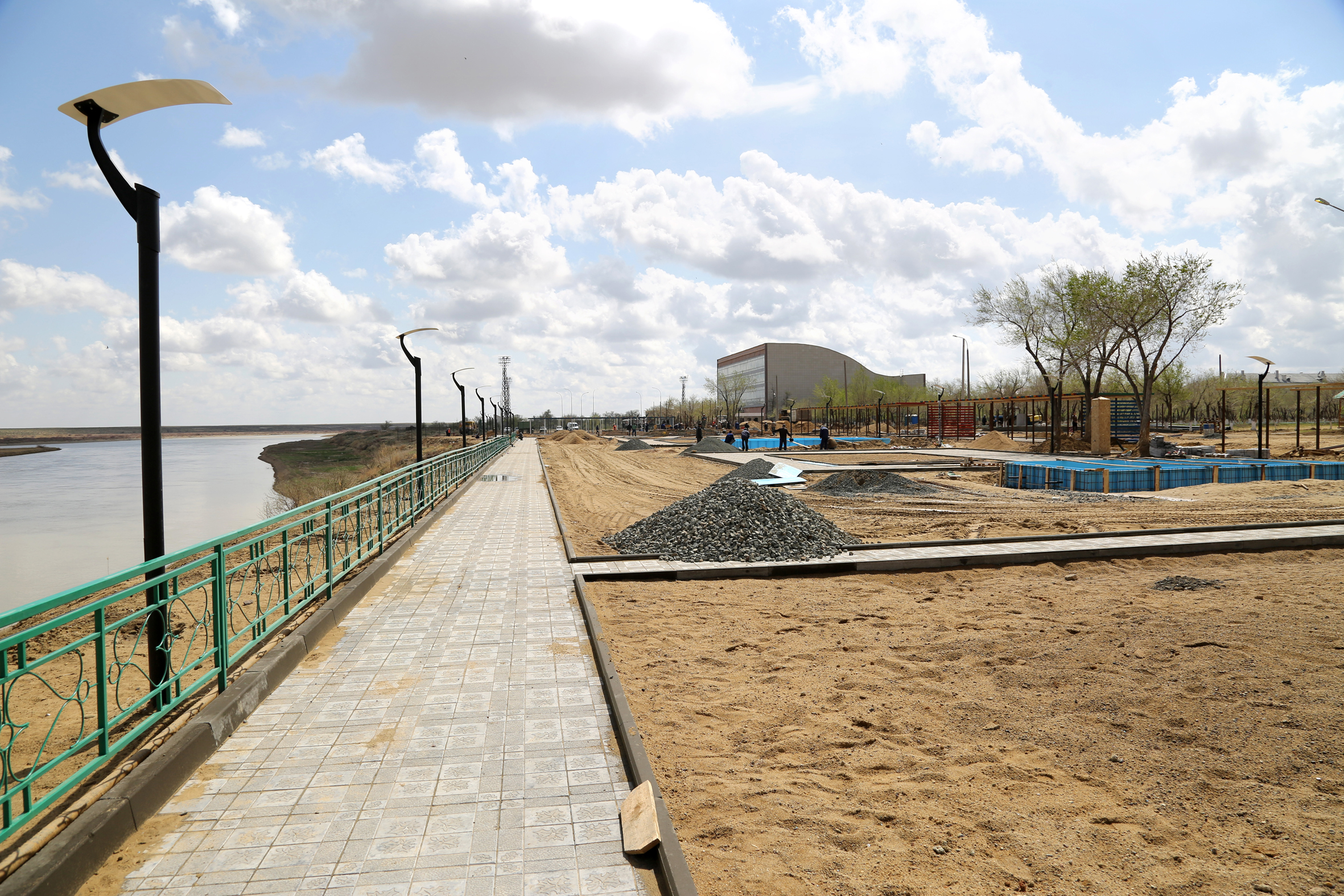 В ГКУ «Инженерные работы» сообщили, что в результате благоустройства территории городской зоны отдыха выполнены работы по планировке территории на площади 17 200 м2 с завозом дополнительного грунта (ордазинского песка) в объёме 1 200 м3, завезено и уложено 160 м3 мелкозернистого песка для площадок под размещение детского оборудования и турников (воркаутов), 470 м3 среднезернистого песка для волейбольной площадки, 240 м3 бетона, 160 м3 щебня, установлено 1 980 м бортового камня, уложено 2 660 м2 тротуарной плитки, установлено 42 светильника марки «СТРИТ» и 11 уличных светильников со светодиодными лампами, 12 светильников установлены с прожекторами на баскетбольной и волейбольной площадках, 400 м защитного ограждения типа «Топаз» установлено по периметру территории, 245 м декоративного ограждения - вдоль набережной. На завершающей стадии планируется установка 42 скамеек для отдыха и 42 урн.