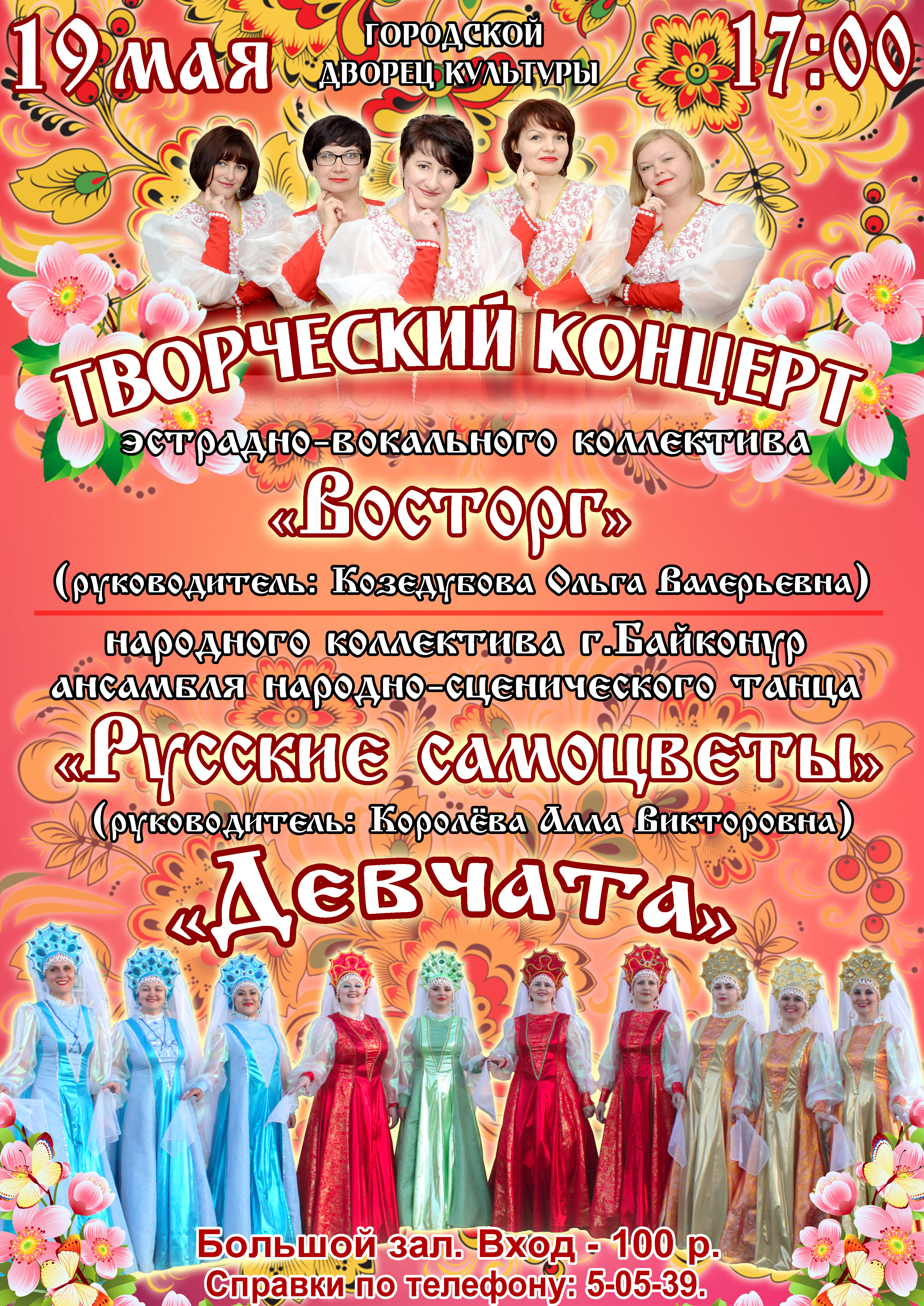 19 мая. 17:00. ГДК (большой зал). Концерт эстрадно-вокального коллектива «Восторг» (руководитель Ольга Козедубова) и ансамбля народно-сценического танца «Русские самоцветы» (руководитель Алла Королёва).