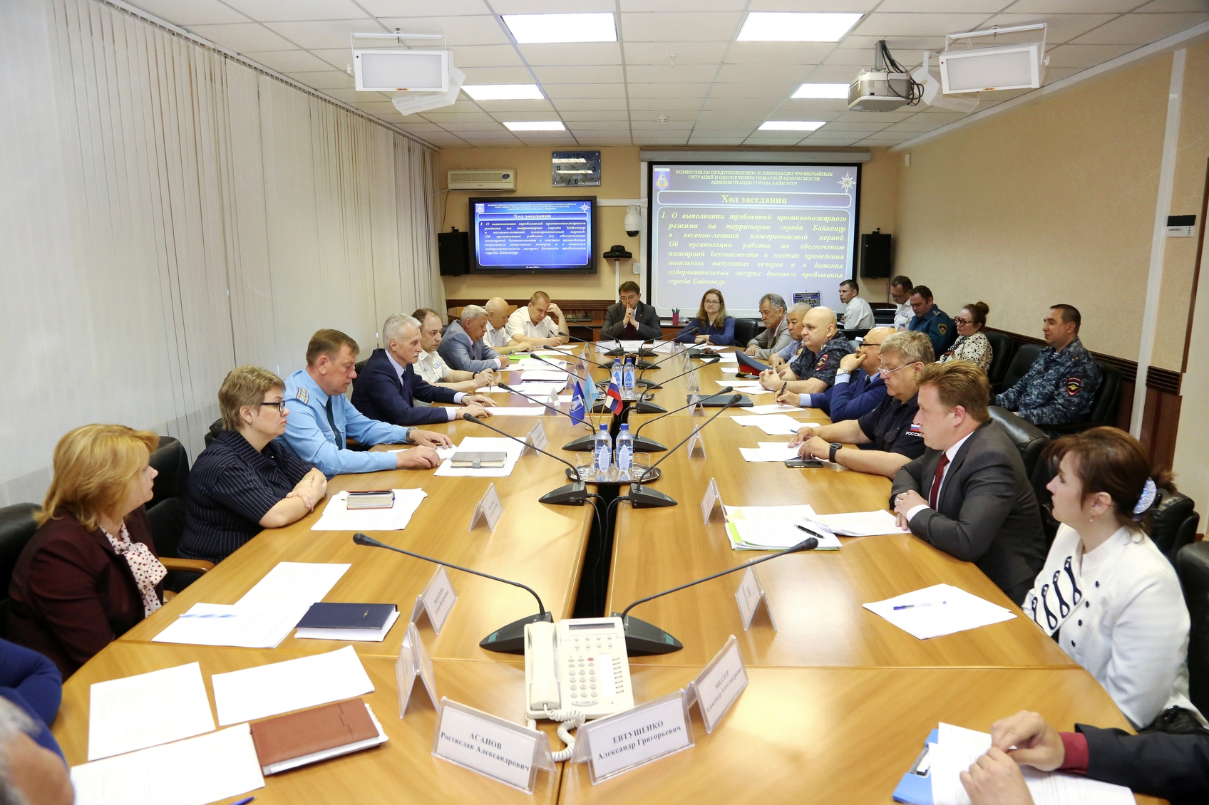 15 мая под председательством первого заместителя главы администрации Виктора Лопаткина состоялось очередное заседание комиссии по предупреждению и ликвидации чрезвычайных ситуаций и обеспечению пожарной безопасности администрации города Байконура (КЧС). На заседании были рассмотрены вопросы, касающиеся выполнения требований противопожарного режима на территории города в весенне-летний пожароопасный период; организации работы по обеспечению пожарной безопасности в местах проведения школьных выпускных вечеров и городских детских оздоровительных лагерях дневного пребывания; мер по обеспечению безопасности населения на территориях городских зон отдыха № 1, №2 и плескательного бассейна «Ракушка»; работы Межведомственной рабочей группы по контролю устранения нарушений законодательства Российской Федерации о пожарной безопасности.