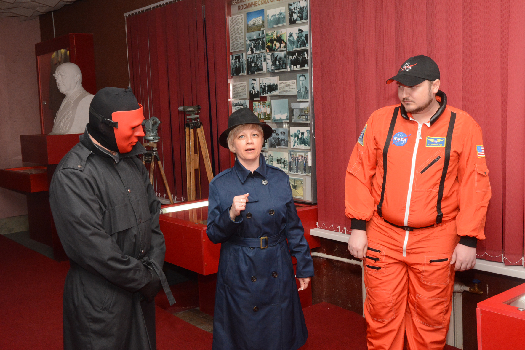 Как сообщили в Музее истории космодрома Байконур, музей впервые присоединился к этой акции. Отсутствие опыта в организации подобного рода мероприятий не помешало музейщикам сделать «Ночь в музее» разнообразной, насыщенной и интересной не только для любителей посещать музеи, но и даже для тех, кто в музеи ходит редко. Музейщики предложили участникам «Музейной ночи» перенестись в будущее вместе с героями известного советского мультфильма «Тайна третьей планеты» по мотивам повести Киры Булычева «Путешествие Алисы». Сценарий познавательно-развлекательной экскурсии был ориентирован на семейную аудиторию. Вместе с главными героями - профессором Селезневой, ее дочерью Алисой и капитаном космического корабля Зелёной, в роли которых выступили сотрудники музея и добровольные помощники - гости побывали на Луне, где приняли участие в интеллектуальном футбольном матче, посетили музей на планете Капитанов, где директор музея доктор Верховцева провела небольшую экскурсию. Самые яркие впечатления и взрослые, и дети получили от пребывания на планете Блук, где живут редкие животные, среди которых птица Говорун, Индикатор, меняющий цвета в зависимости от настроения, невидимые рыбки и т.д. Видеоархив планеты «Шелезяка» содержал познавательный материал о космических рекордах Земли. На каждом этапе участников программы ждала встреча с удивительными представителями космического пространства, которые предлагали много интересных заданий: викторины, мастер-классы, головоломки, видеозагадки. Ведущие провели также флешмоб, который помог при помощи жестов запомнить расположение планет Солнечной системы. Цветы-зеркала, растущие на одной из планет, как жесткий диск хранящие в своей памяти все, что когда-то происходило вокруг, позволили гостям музея перенестись в эпоху средневековья, познакомиться с укладом жизни и колоритом жителей той эпохи. Захватывающей была и развязка – разоблачение «врагов» и благополучное завершение космического путешествия. Кульминацией мероприятия стал розыгрыш праздничной музейной лотереи. Самые активные участники получили памятные призы, а самым юным гостям достались сладкие подарки.