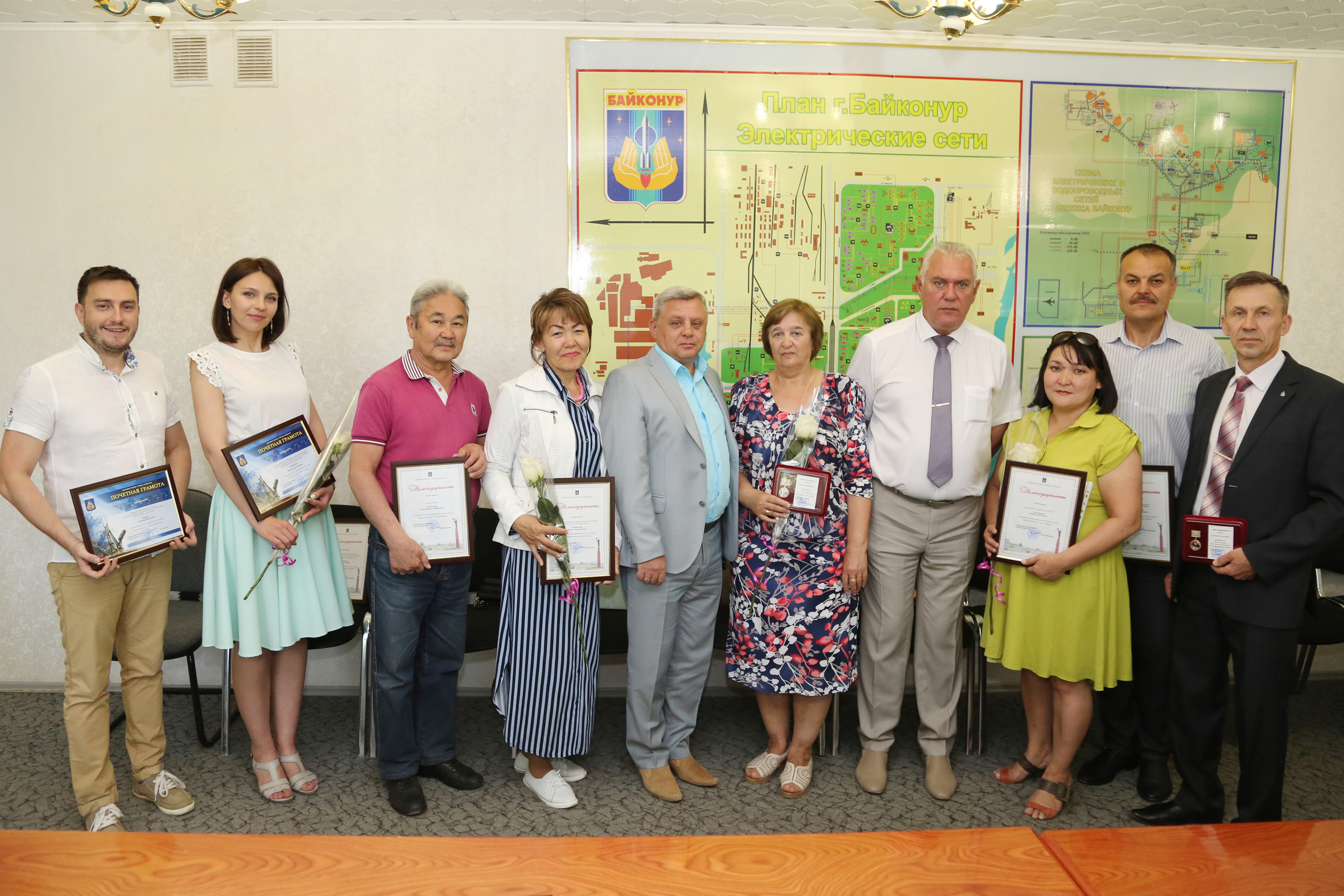 Почетными грамотами и благодарностями главы администрации города отмечены специалисты Космического центра «Южный», Управления городского хозяйства, предприятий Жилищное хозяйство, Газовое хозяйство, БайконурСвязьИнформ, Горводоканал и Центральный универсальный рынок.