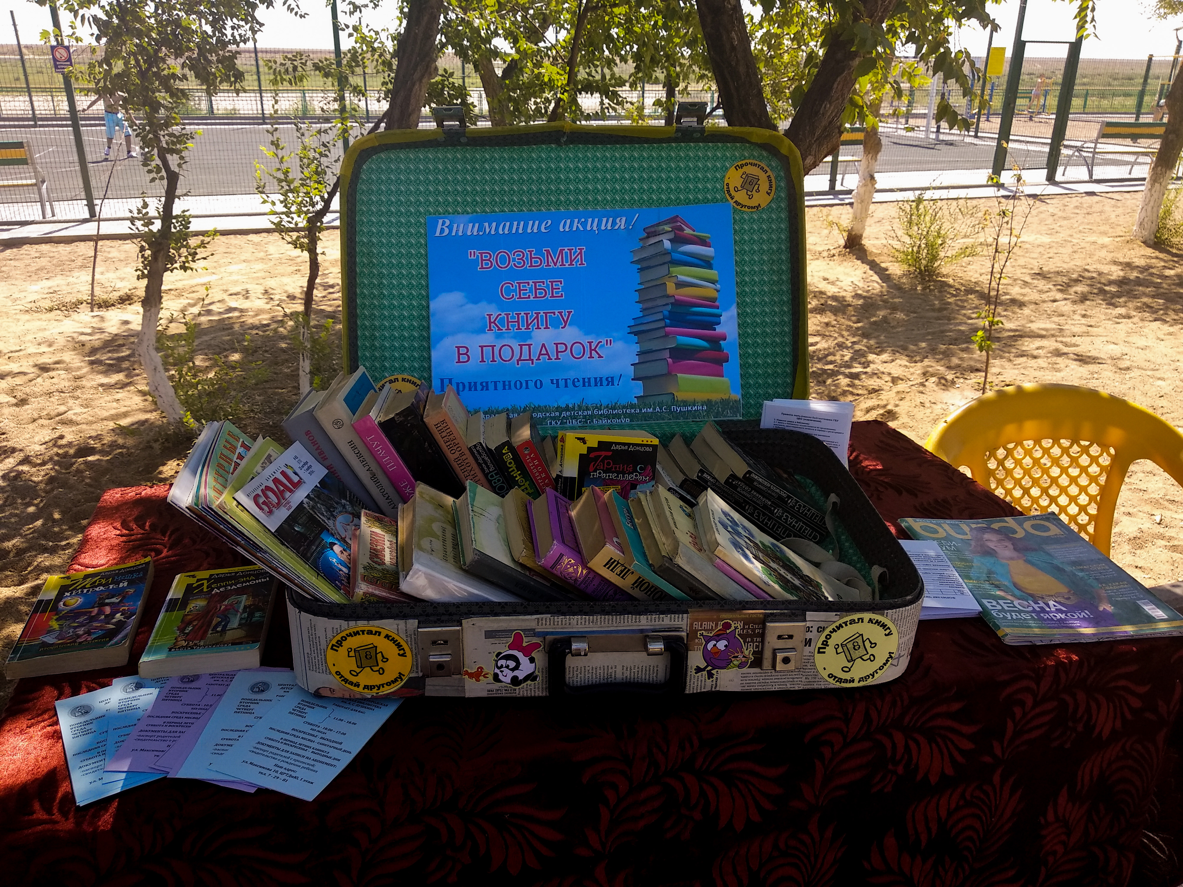 5 июля на территории городской зоны отдыха сотрудники Централизованной библиотечной системы провели акцию «Возьми книгу в подарок» и организовали книжную выставку. Такая акция прошла в зоне отдыха впервые и очень заинтересовала отдыхающих.