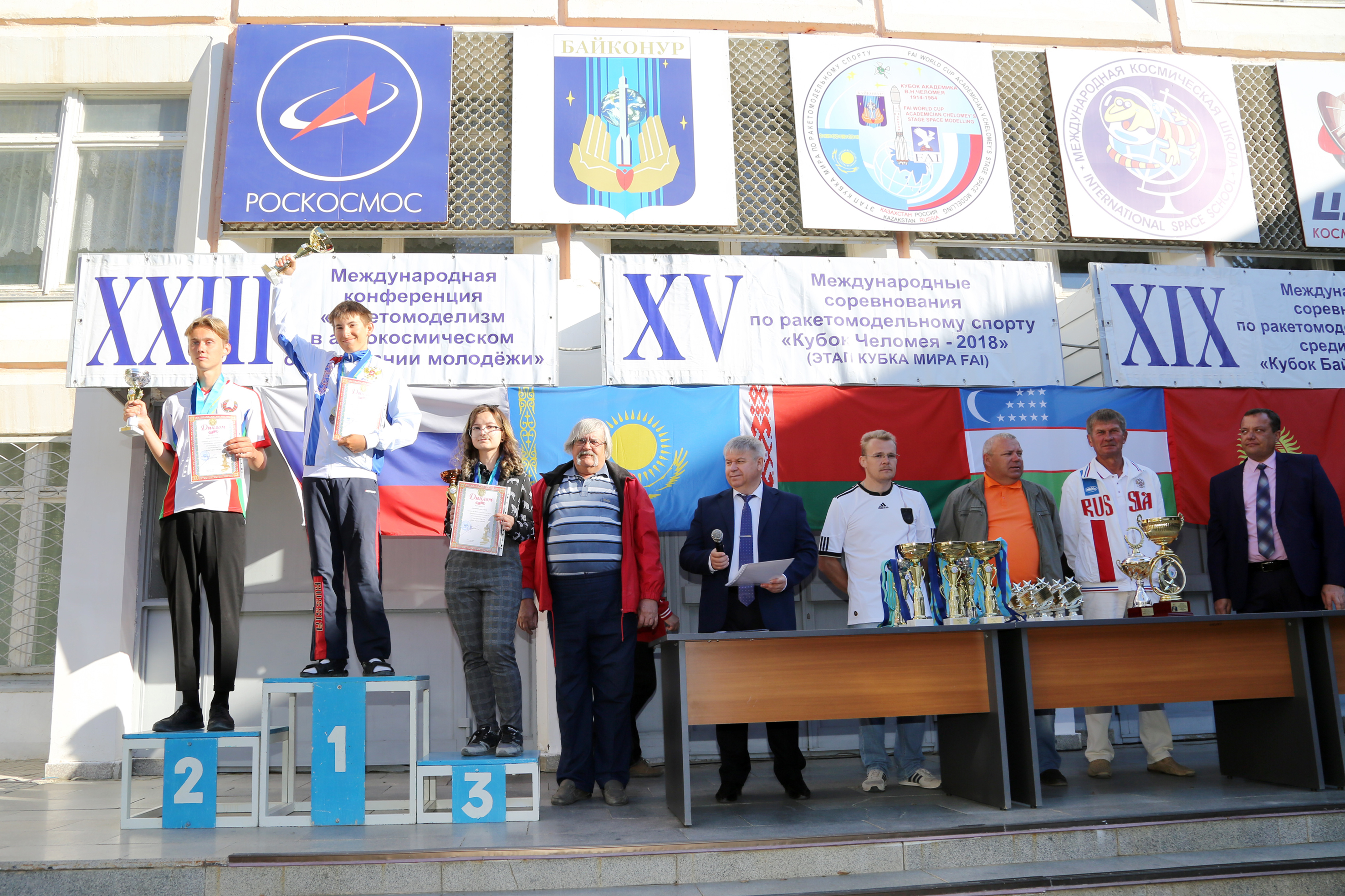 25 сентября в Международной космической школе состоялось закрытие XXIII Международной конференции «Ракетомоделизм в аэрокосмическом образовании молодежи», XIX Международных соревнований по ракетомодельному спорту среди юношей «Кубок Байконура-2018», Международных соревнований Этап Кубка Мира ФАИ «Кубок Челомея» и Этапа Кубка Мира ФАИ «Кубок Коркыт-Ата».