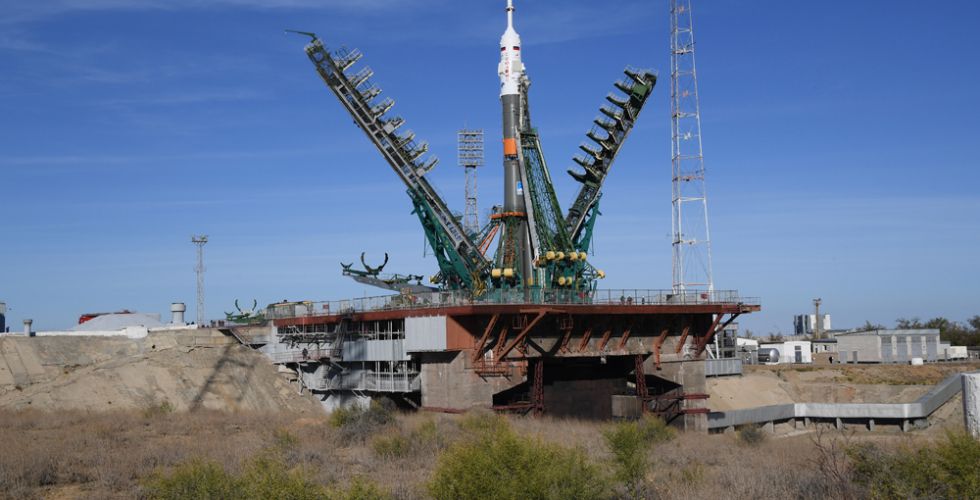 По сообщению РКК «Энергия», сегодня, 9 октября, ракета-носитель среднего класса «Союз-ФГ» с транспортным пилотируемым кораблём (ТПК) «Союз МС-10» вывезена из монтажно-испытательного корпуса и установлена на стартовом комплексе площадки № 1 «Гагаринский старт» космодрома Байконур.