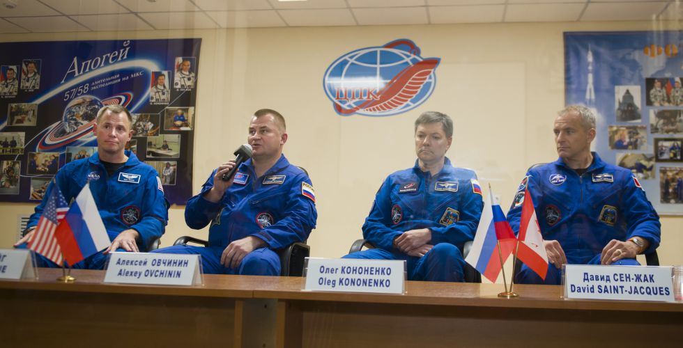 Алексей Овчинин заявил, что он рад, что в год 20-летия МКС он будет находиться на станции. При этом он отметил, что МКС должна функционировать как можно дольше. Кроме того, Алексей Овичинин рассказал про эксперимент по 3D-печати тканей мыши в космосе: «Этот эксперимент будет проводиться впервые. Предстоит две серии эксперимента. Сразу после стыковки предстоит апробация самого принтера. Мы будем идти от простого к сложному. В дальнейшем результаты будут возвращены на Землю, ученые внесут коррективы: если все будет нормально, будем делать более сложные вещи».