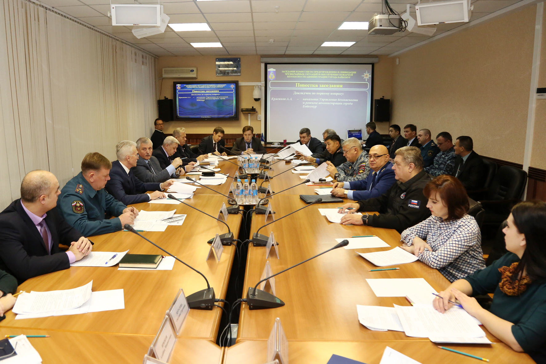 13 декабря состоялось заседание комиссии по предупреждению и ликвидации чрезвычайных ситуаций и обеспечению пожарной безопасности администрации города Байконур (КЧС). Заседание проводил председатель комиссии, первый заместитель главы администрации Виктор Лопаткин.