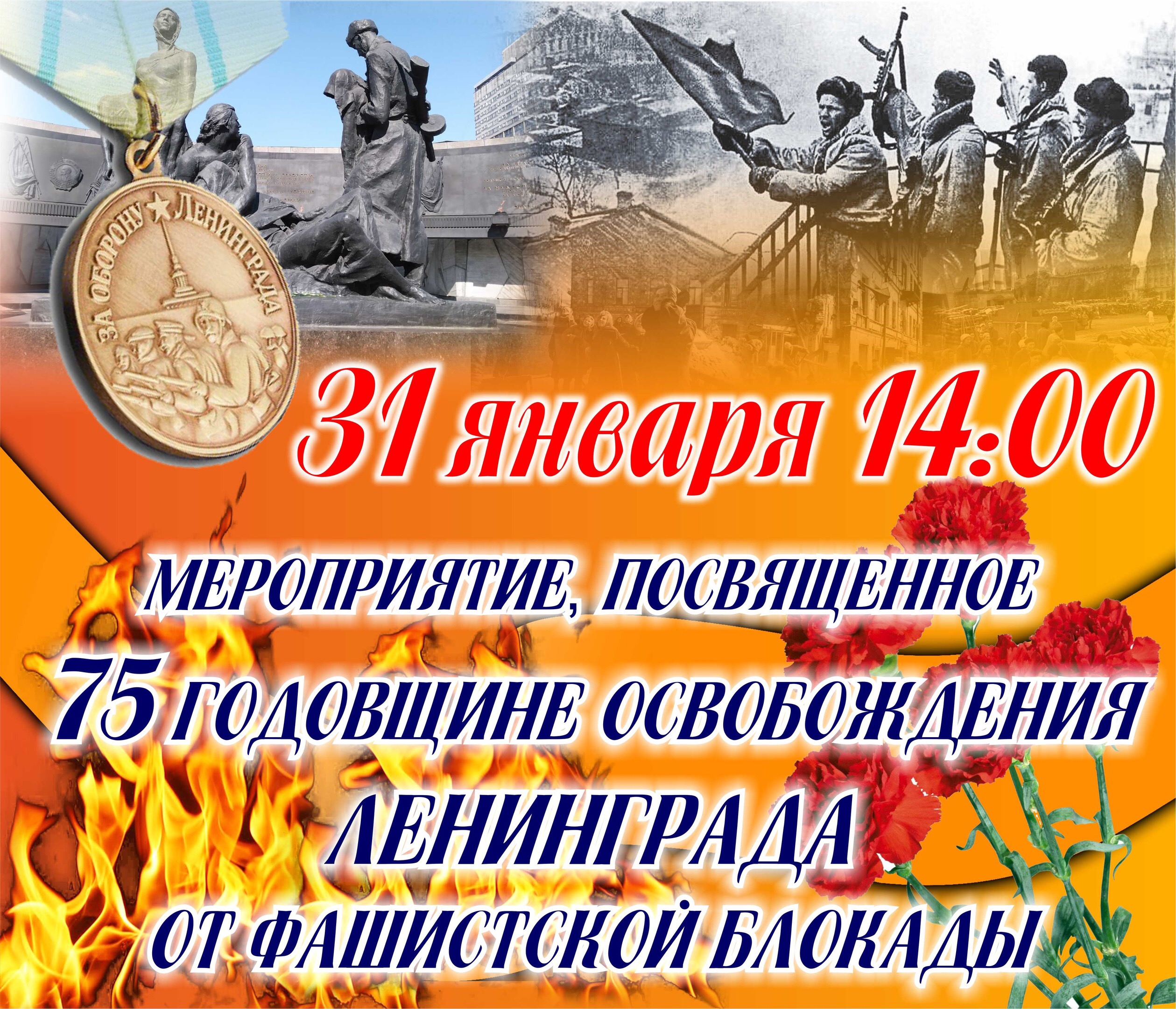 31 января. 14.00. Городской Дворец культуры. Театрализованная программа, посвященная 75-ой годовщине освобождения Ленинграда от фашистской блокады (повтор). Вход свободный.