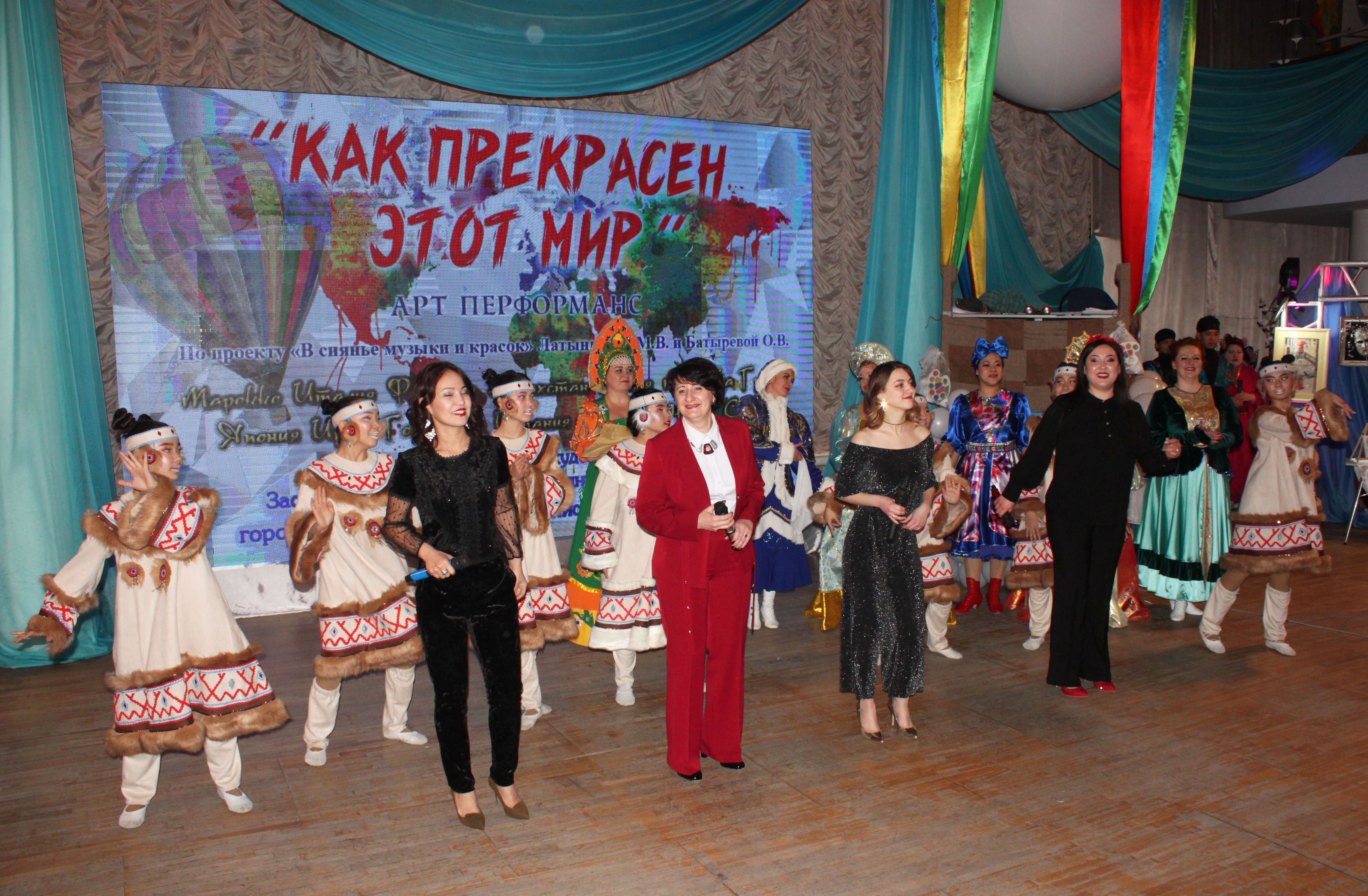 В субботу, 16 февраля, в Городском Дворце культуры Заслуженный коллектив народного творчества города Байконура студия живописи и декора «Мечта» (руководители Людмила Латынцева и Наталья Ходус) представил вниманию зрителей арт-перформанс «Как прекрасен этот мир».