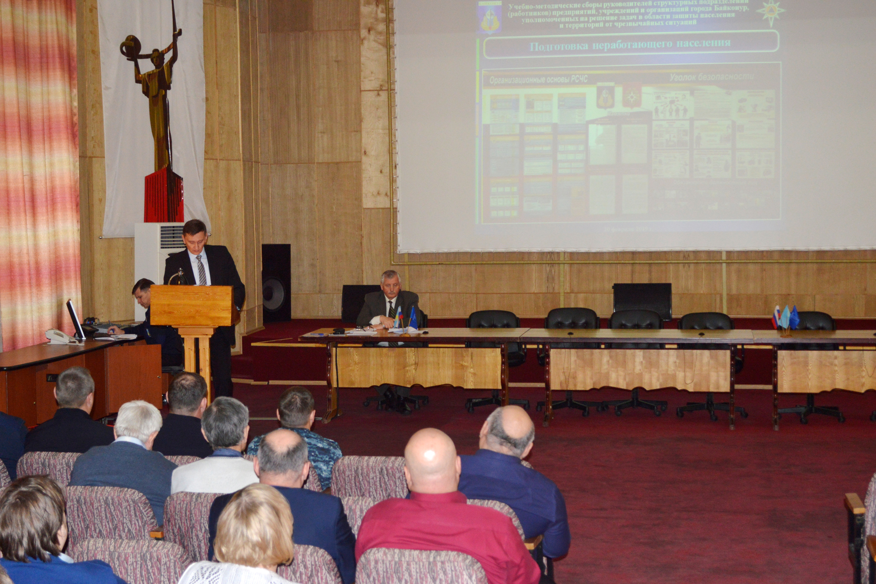 20 февраля в городской администрации состоялись учебно-методические сборы работников предприятий, учреждений и организаций, уполномоченных на решение задач в области защиты населения от чрезвычайных ситуаций на территории города Байконура. Сборы проводились с целью оказания методической помощи уполномоченным работникам в организации проведения подготовки различных групп населения города в области защиты от ЧС. В ходе мероприятия были подведены итоги подготовки населения в 2018 году и определены задачи на 2019 год.