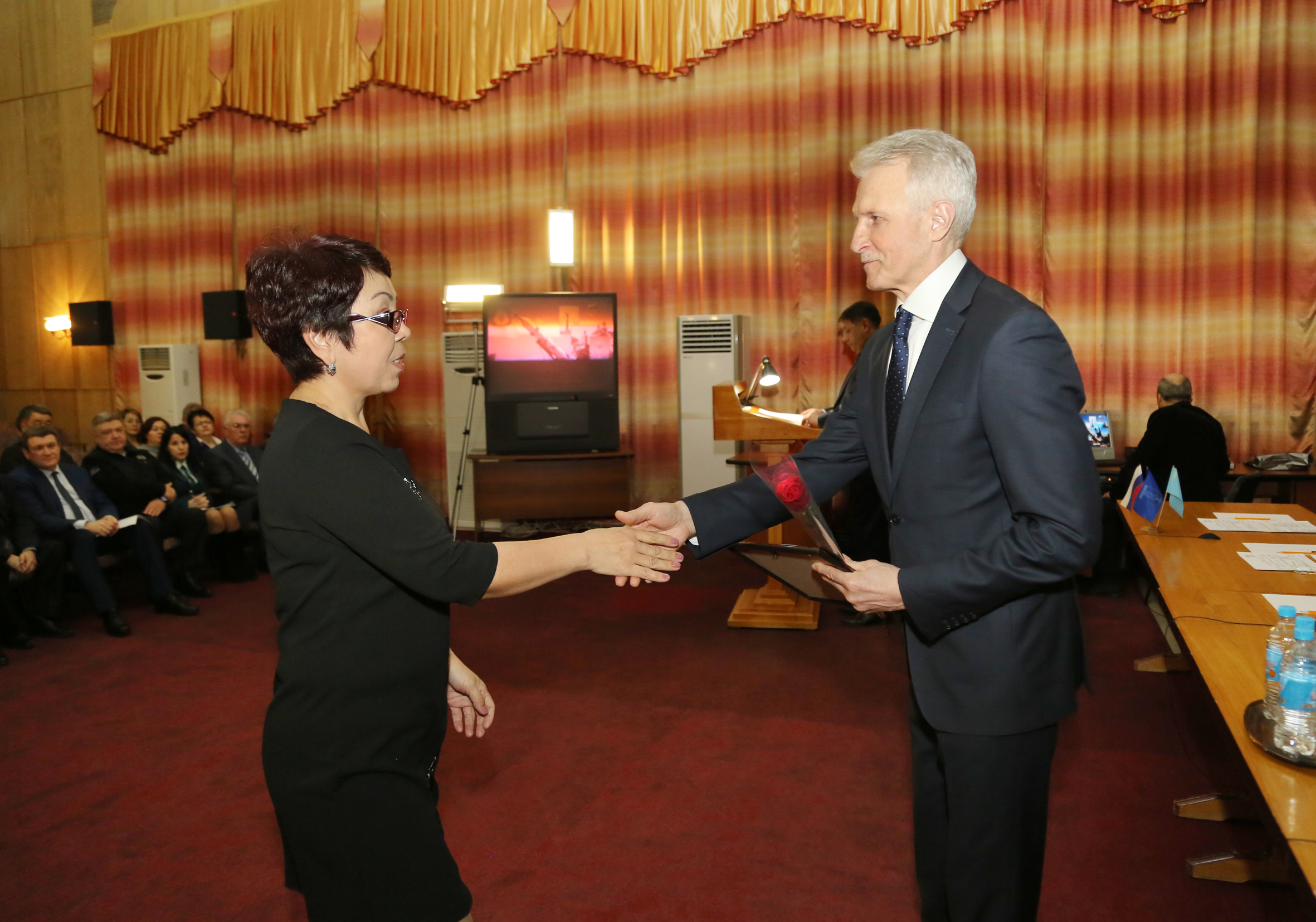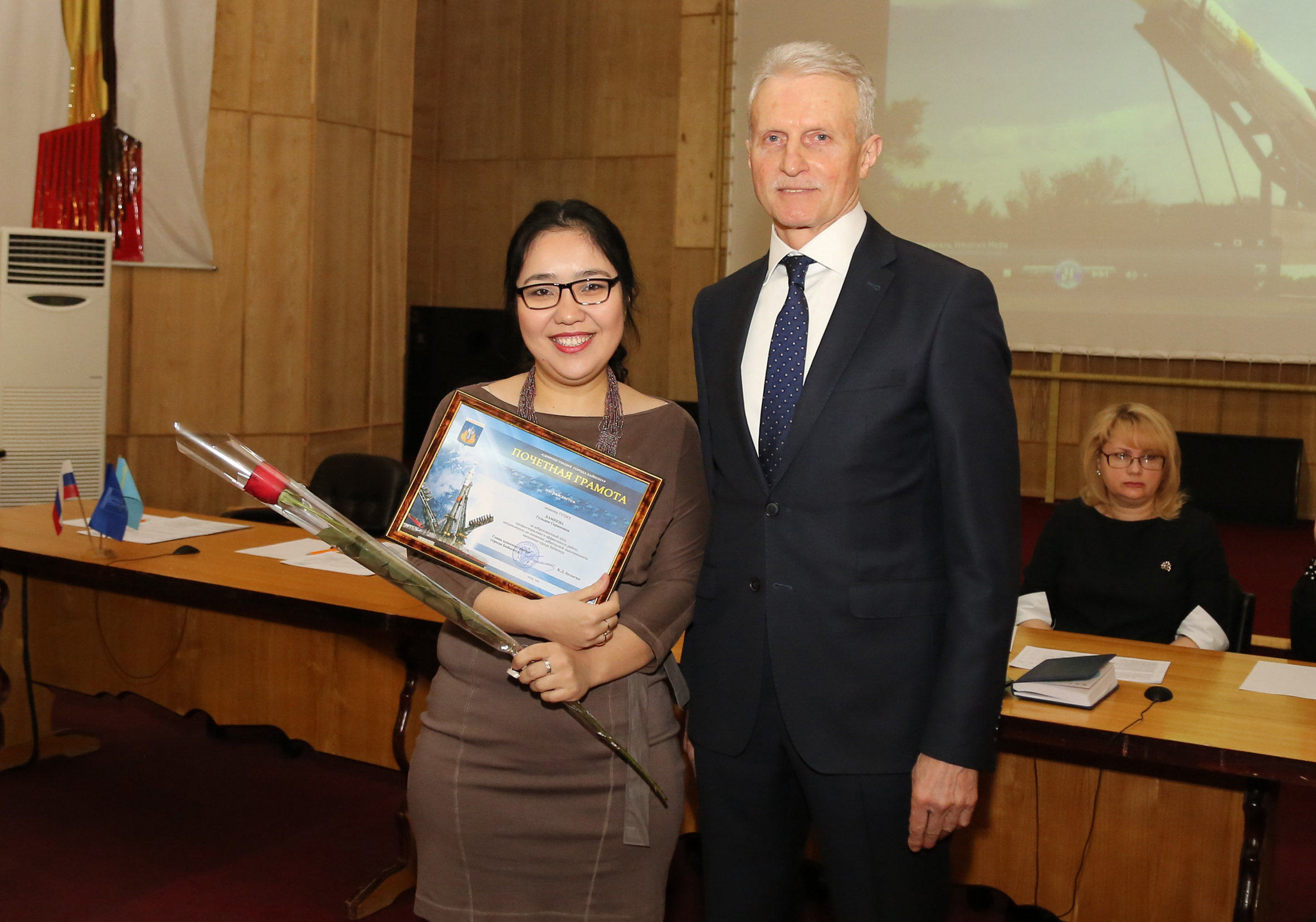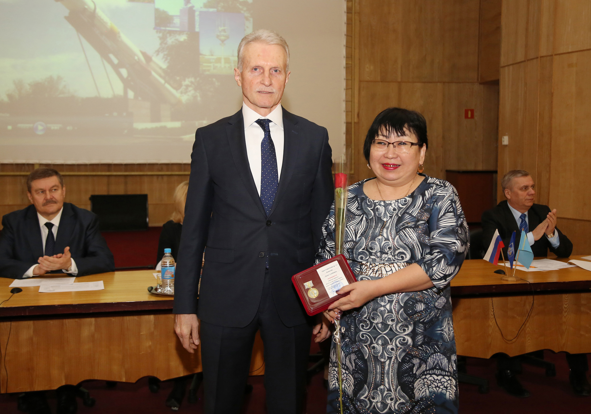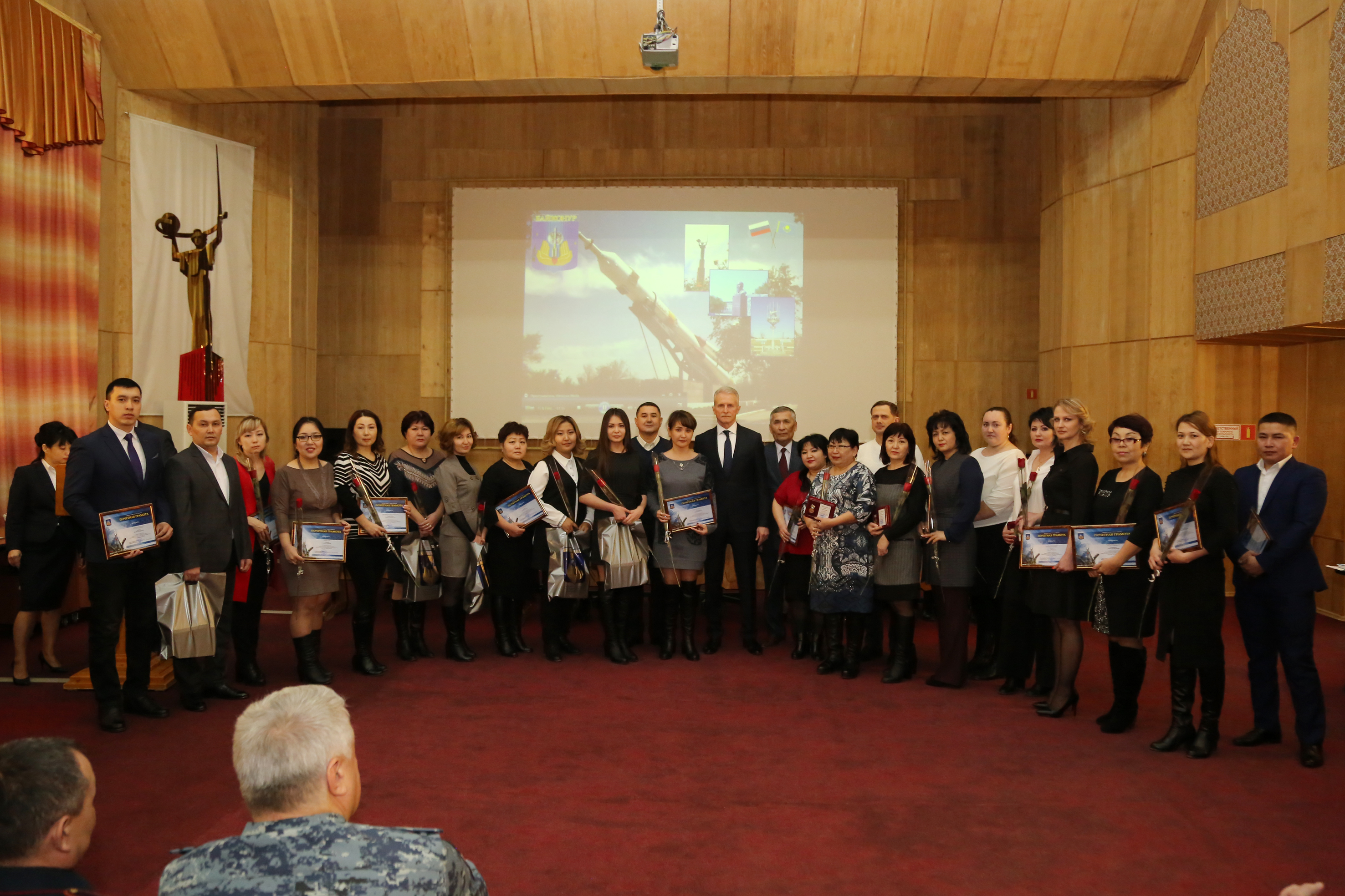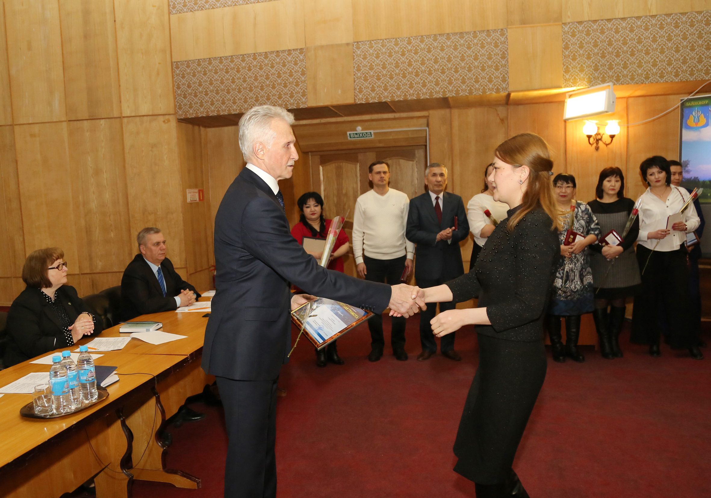 В начале заседания состоялось чествование работников городских предприятий. За профессионализм и эффективную работу, направленную на снижение дебиторской задолженности населения, сотрудники юридических, абонентских и абонентно - договорных отделов предприятий Горводоканал, Жилищное хозяйство, Газовое хозяйство и БайконурСвязьИнформ, техники по учету ЖЭУ награждены памятными медалями, почетными грамотами главы администрации и подарками.