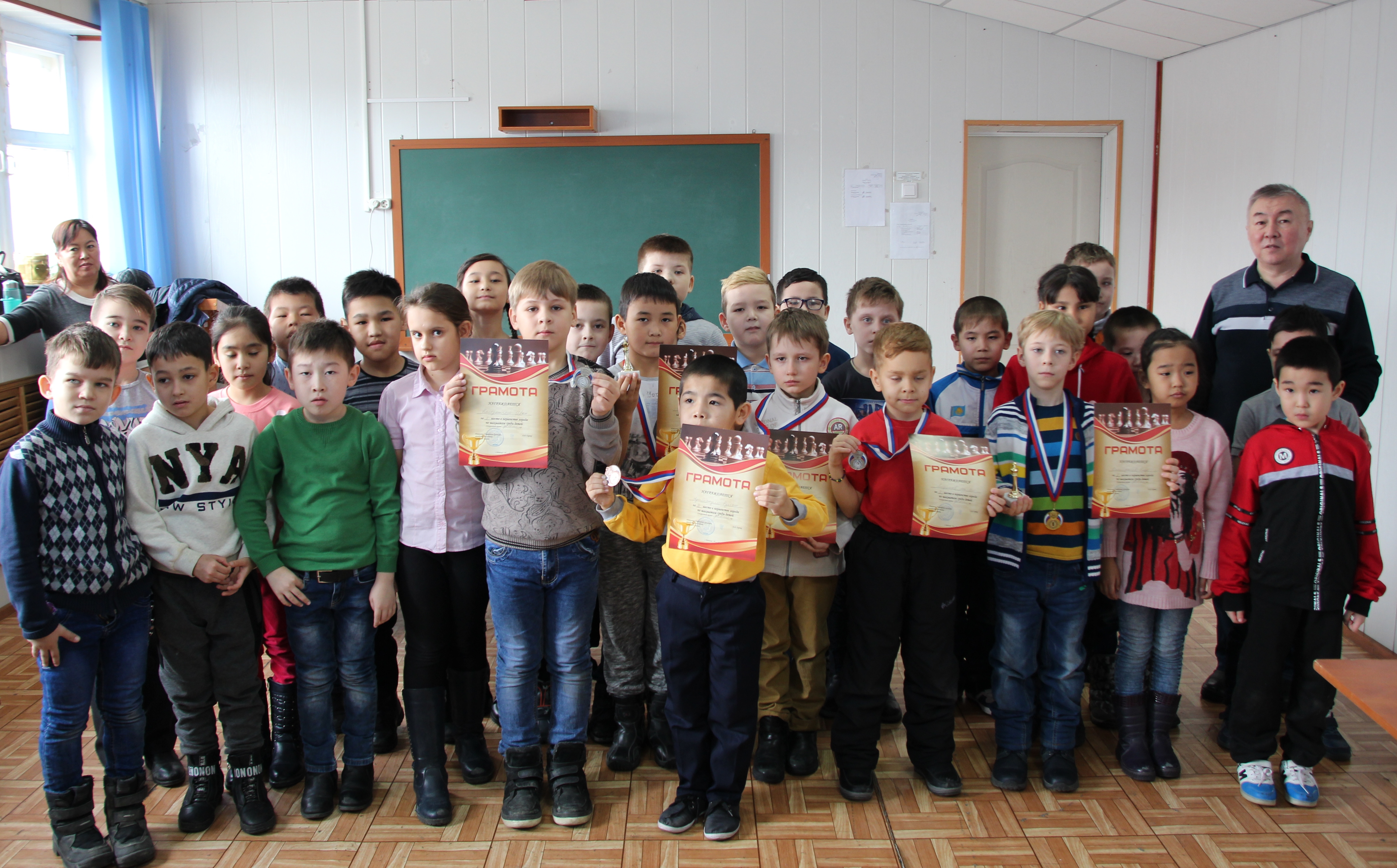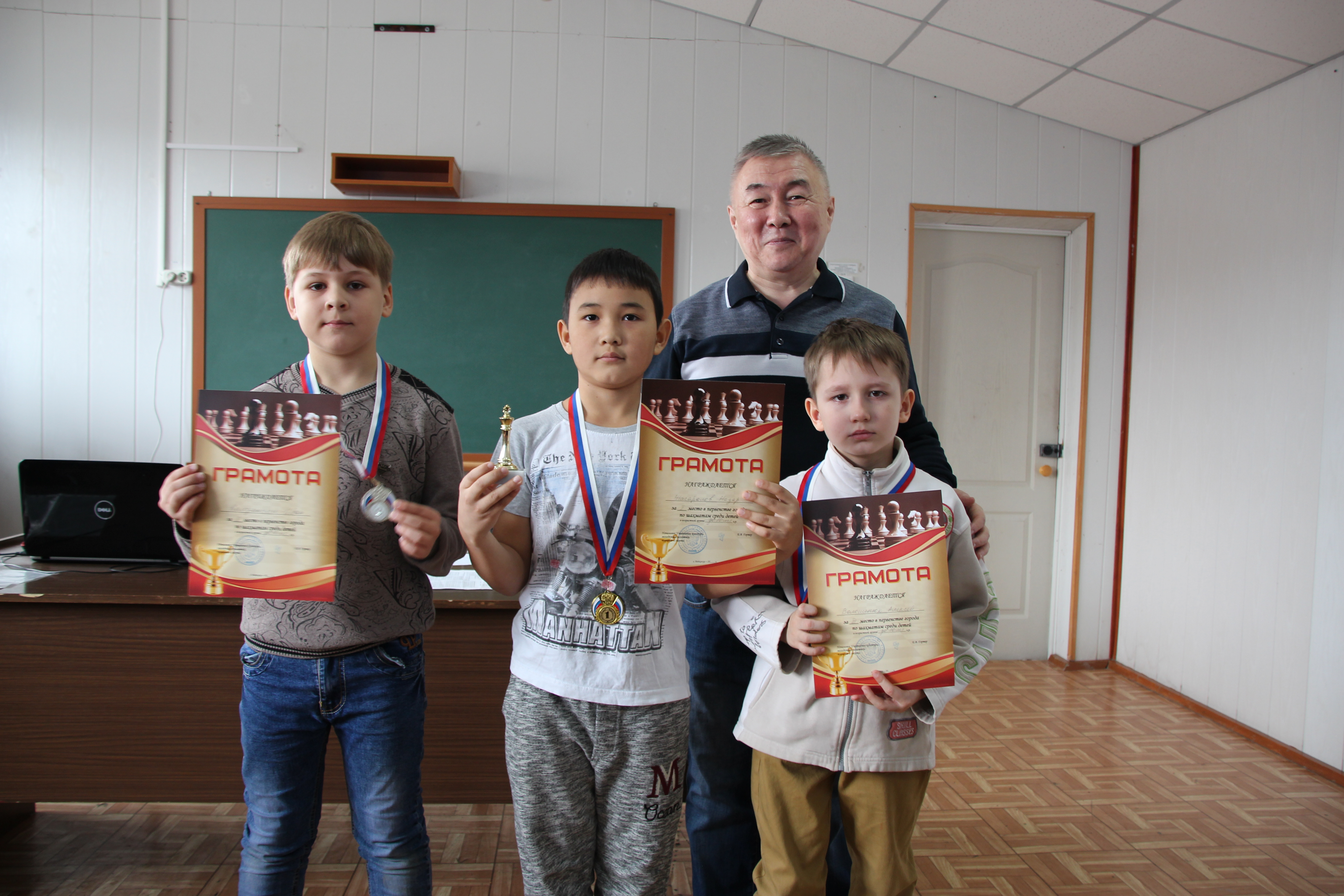 По итогам соревнований победителем в младшей группе до 8 лет стал Егор Калистратов, серебряную медаль завоевал Матвей Елфимов, бронза досталась Рустему Адилжанулы. В младшей группе до 10 лет лучшим стал Назар Жасаралов, серебро у Ивана Колодяжного, бронза - Алексей Волошенюк. Победители и призеры были награждены грамотами и медалями. Юные шахматисты, завоевавшие 1-е места, были также поощрены статуэтками.