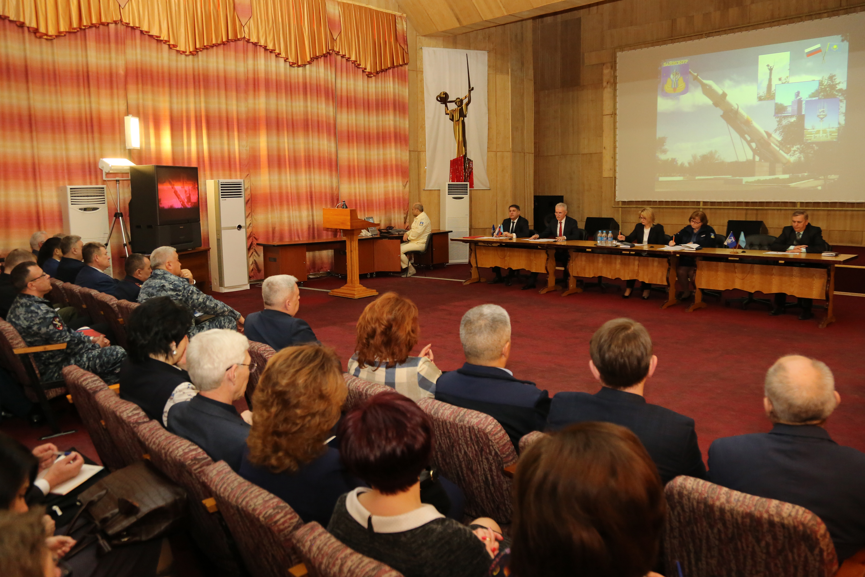 В начале заседания состоялось чествование работников городских организаций. За личный вклад в обеспечение сохранности ограждения периметра города и организацию соблюдения особого режима на территории Байконура ряд сотрудников Управления безопасности и режима администрации города, предприятий Жилищное хозяйство и БайконурСвязьИнформ, УМВД России на комплексе «Байконур» и УВО ВНГ России по Московской области отмечены памятными медалями, почетными грамотами главы администрации, благодарностями и подарками.