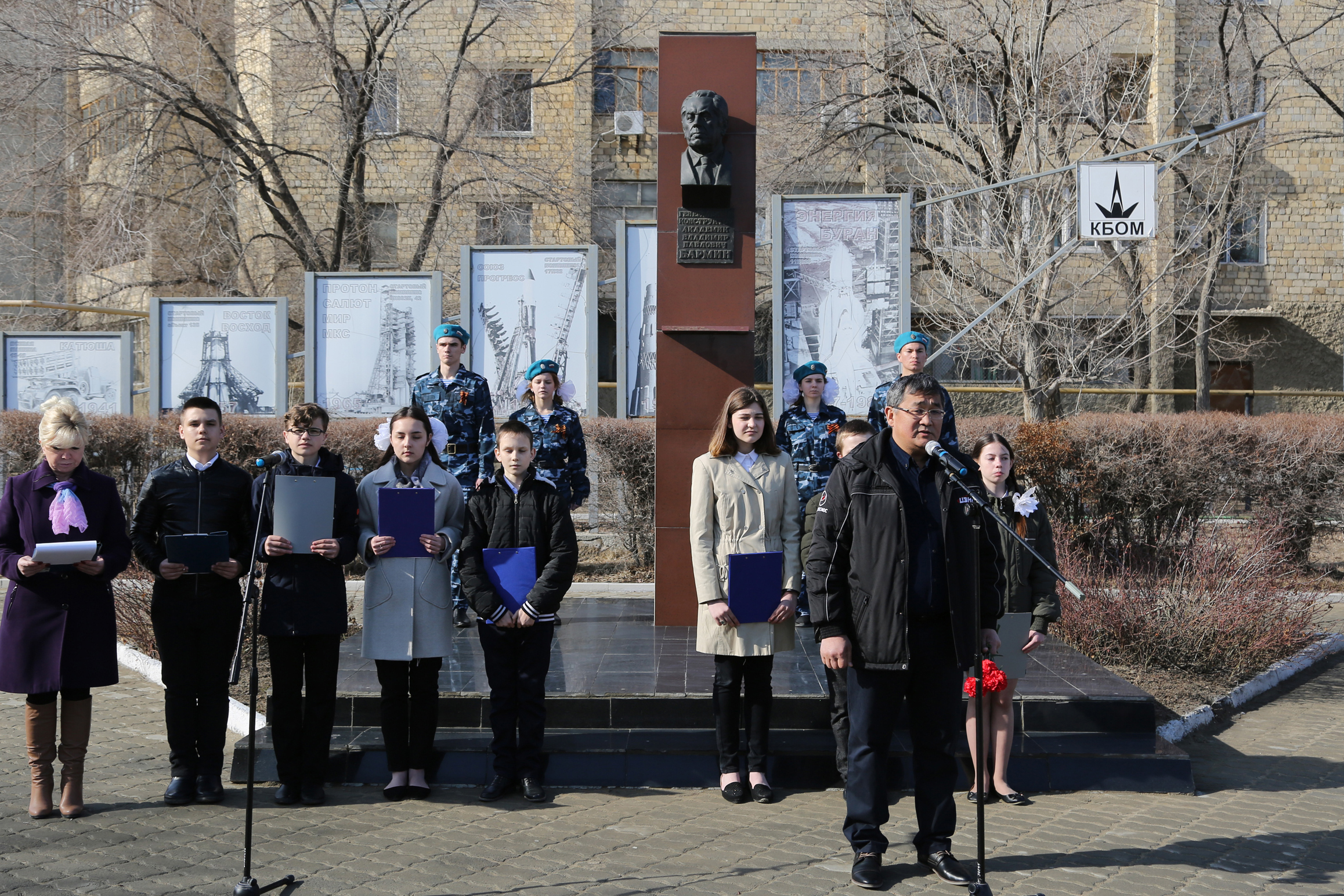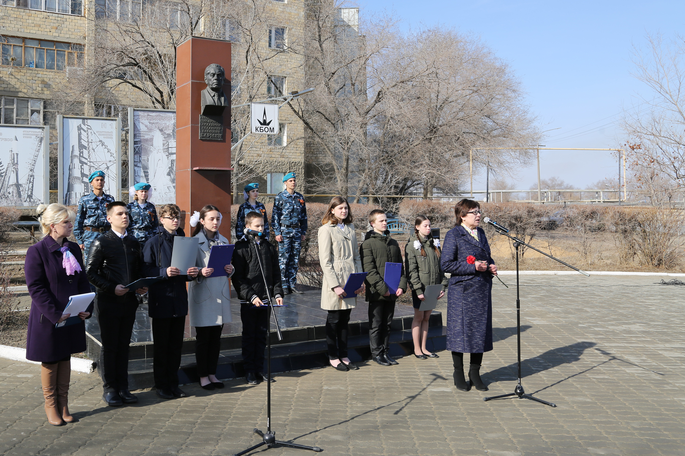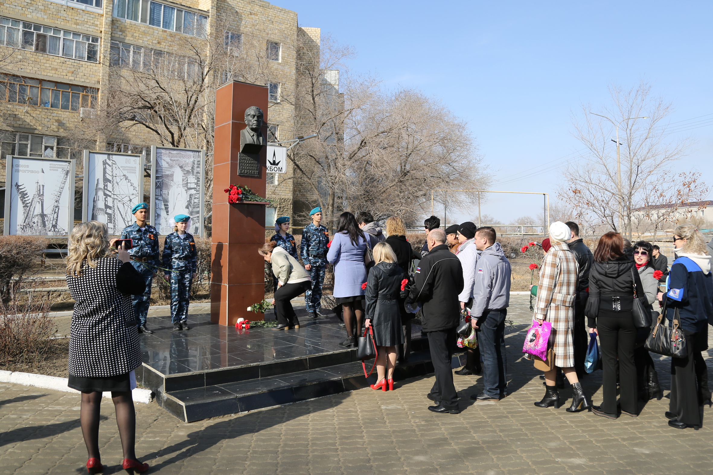 По случаю этой даты 18 марта у памятника В.П. Бармину состоялся митинг с участием представителей администрации города Байконура, филиала ФГУП "ЦЭНКИ" - КЦ "Южный", городских организаций и школьников.