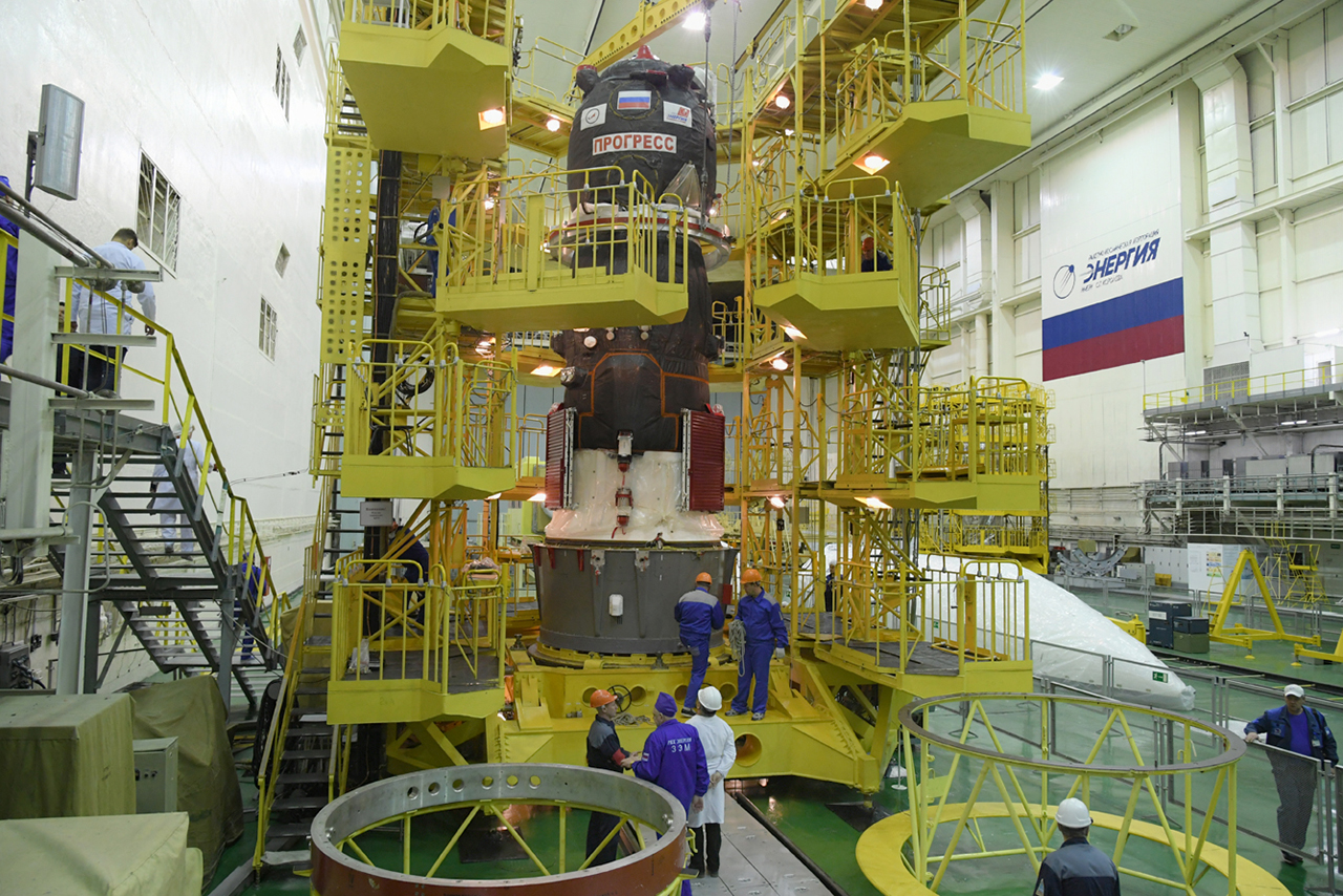 По сообщению Роскосмоса, 28 марта специалисты РКК «Энергия» на космодроме Байконур успешно завершили технологические операции по стыковке транспортного грузового корабля (ТГК) «Прогресс МC-11» с переходным отсеком.