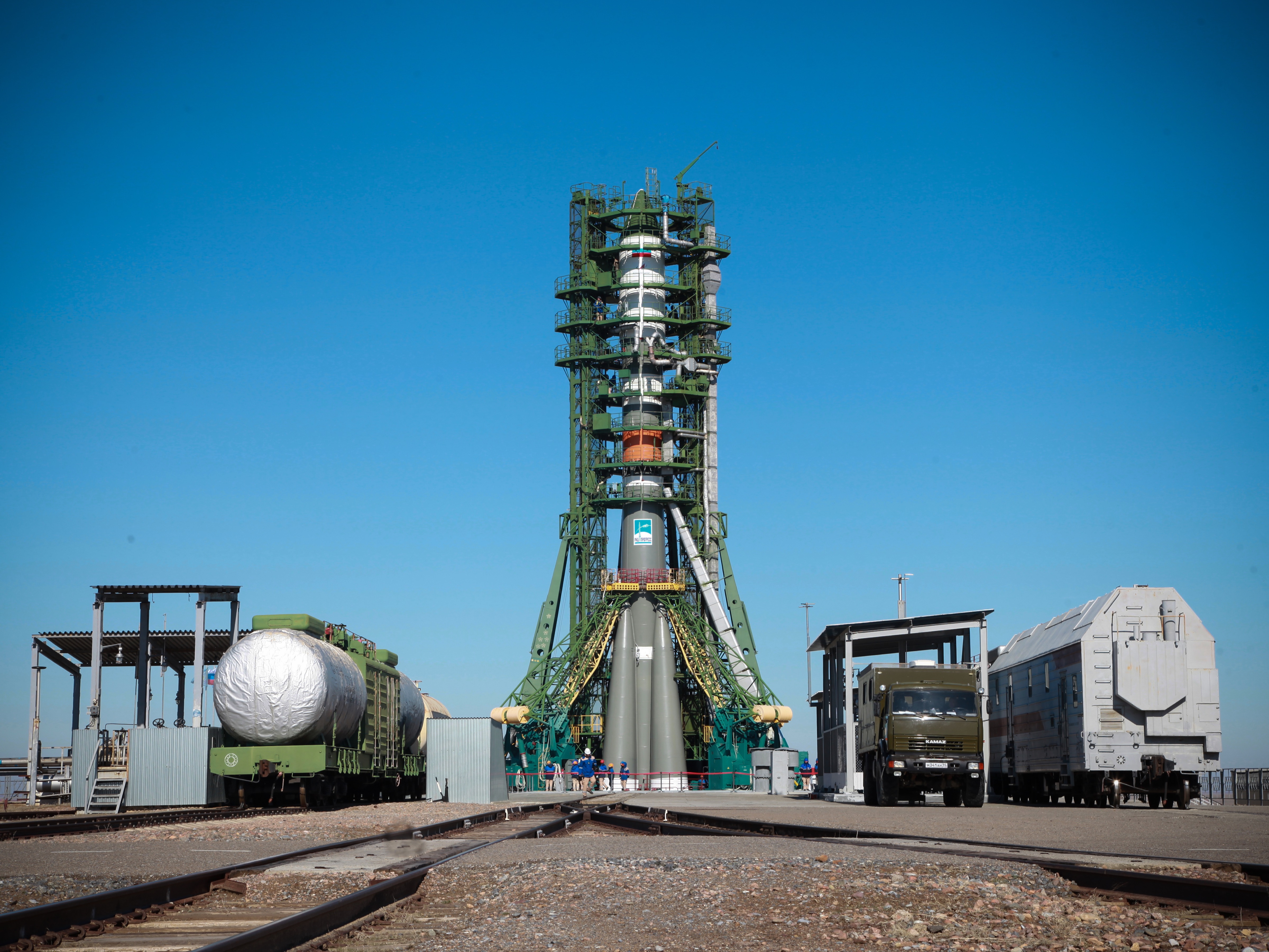 По сообщению Роскосмоса, сегодня ракета-носитель «Союз-2.1а» с транспортным грузовым кораблем (ТГК) «Прогресс МС-11» вывезена из монтажно-испытательного корпуса и установлена на стартовом сооружении площадки № 31 космодрома Байконур. Начались работы по программе первого стартового дня.