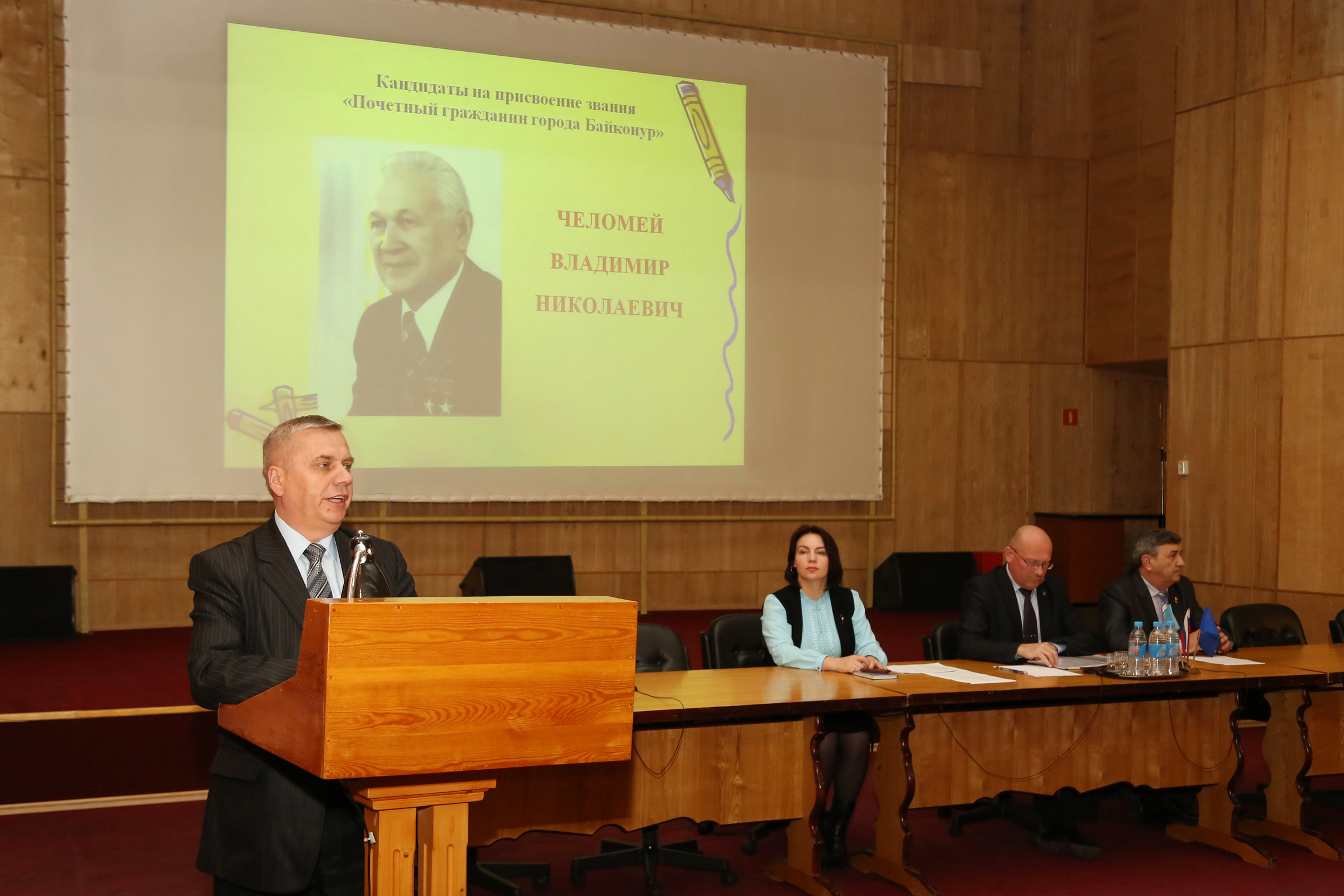 Результаты заседания комиссии ономастической по утверждению почетных званий, почетных наград представил заместитель главы администрации города Байконура Николай Адасев. Он сообщил, что 27 марта состоялось очередное заседание комиссии, в ходе которого были рассмотрены вопросы о включении в список кандидатов на присвоение звания "Почетный гражданин города Байконур" ветерана Байконура, полковника в отставке, заслуженного работника культуры КазССР и РФ Василия Елисеева, кандидатуру которого выдвинула Межрегиональная общественная организация ветеранов космодрома "Байконур", и выдающегося конструктора и ученого Владимира Челомея (посмертно) - кандидата от Представительства на космодроме "Байконур" АО "ВПК "НПО МАШИНОСТРОЕНИЯ". Члены Совета одобрили обе кандидатуры. Он напомнил, что на декабрьском заседании Совета для включения в список на присвоение звания "Почетный гражданин города Байконур" была одобрена кандидатура ветерана Байконура, заслуженного работника связи РФ Анатолия Савкина, за которого ходатайствовала профсоюзная организация Космического центра "Южный" и ряд организаций. Николай Адасев отметил, что прием документов на присвоение почетного звания продолжится до начала мая, окончательное решение будет принято открытым голосованием на заседании Общественного Совета, запланированного на 24 мая.