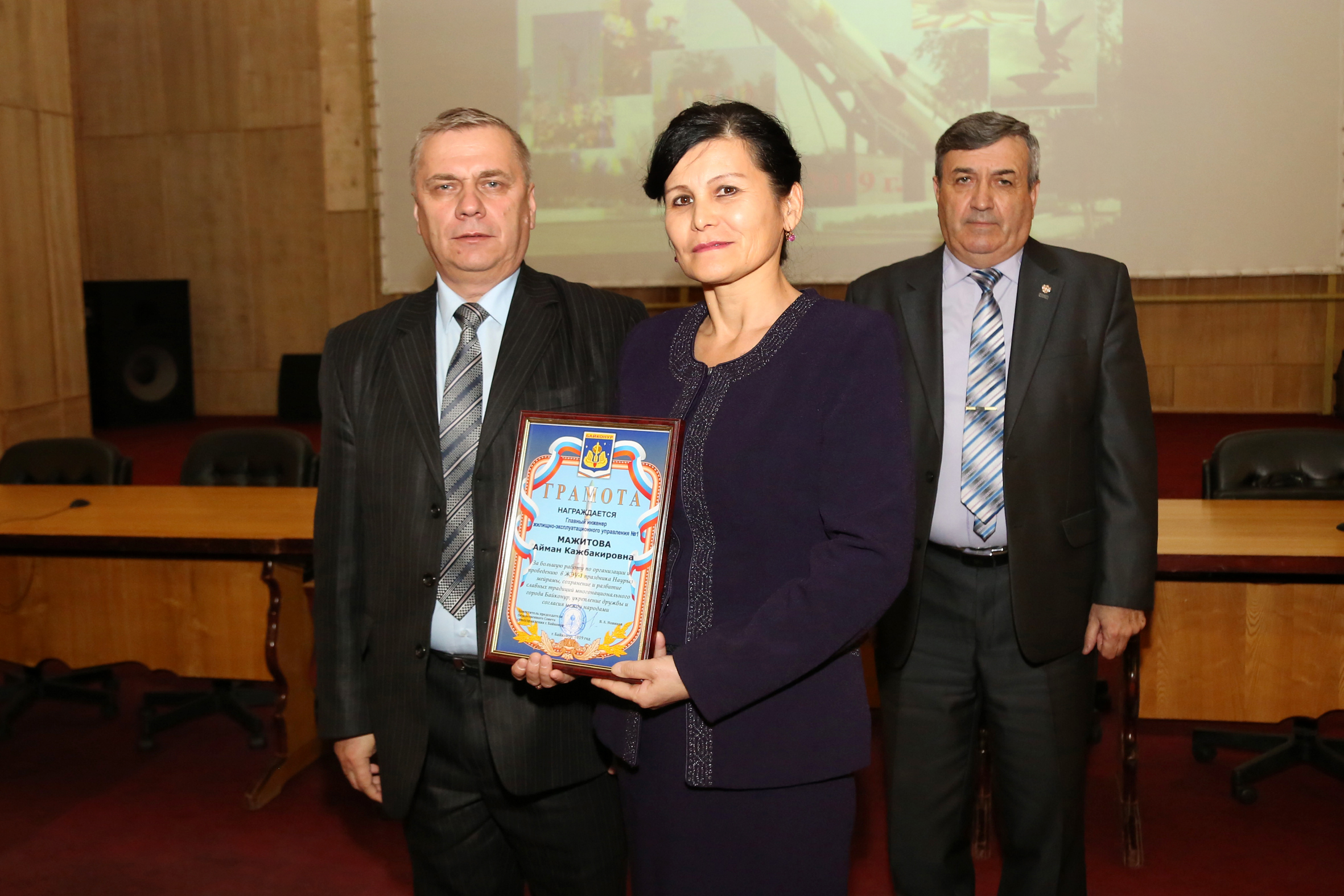 В заключение заседания Николай Адасев вручил члену Совета Айман Мажитовой почетную грамоту, которой она награждена за большую работу по организации и проведению праздника Наурыз мейрамы, сохранение и развитие славных традиций многонационального города Байконура, укрепление дружбы и согласия между народами.