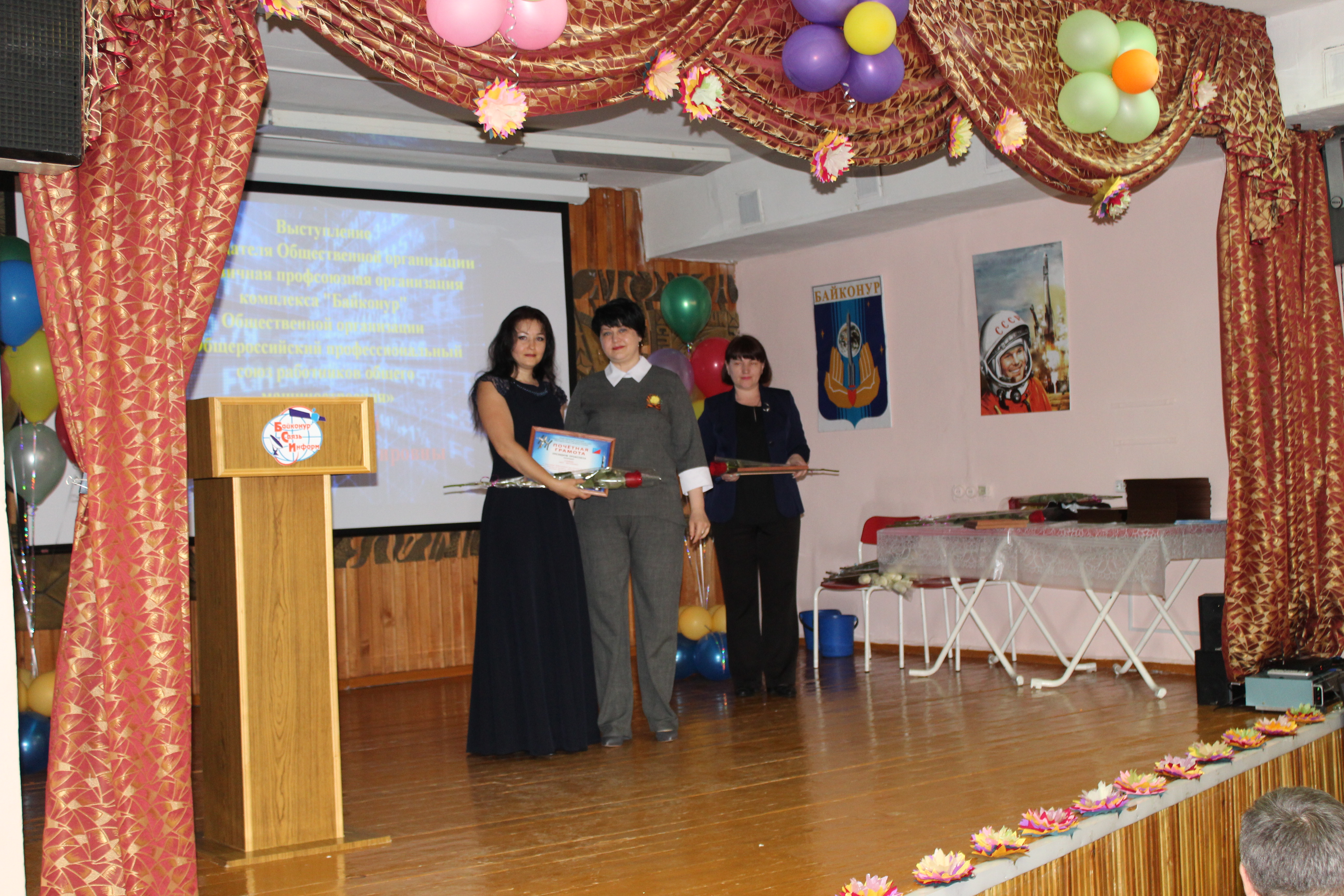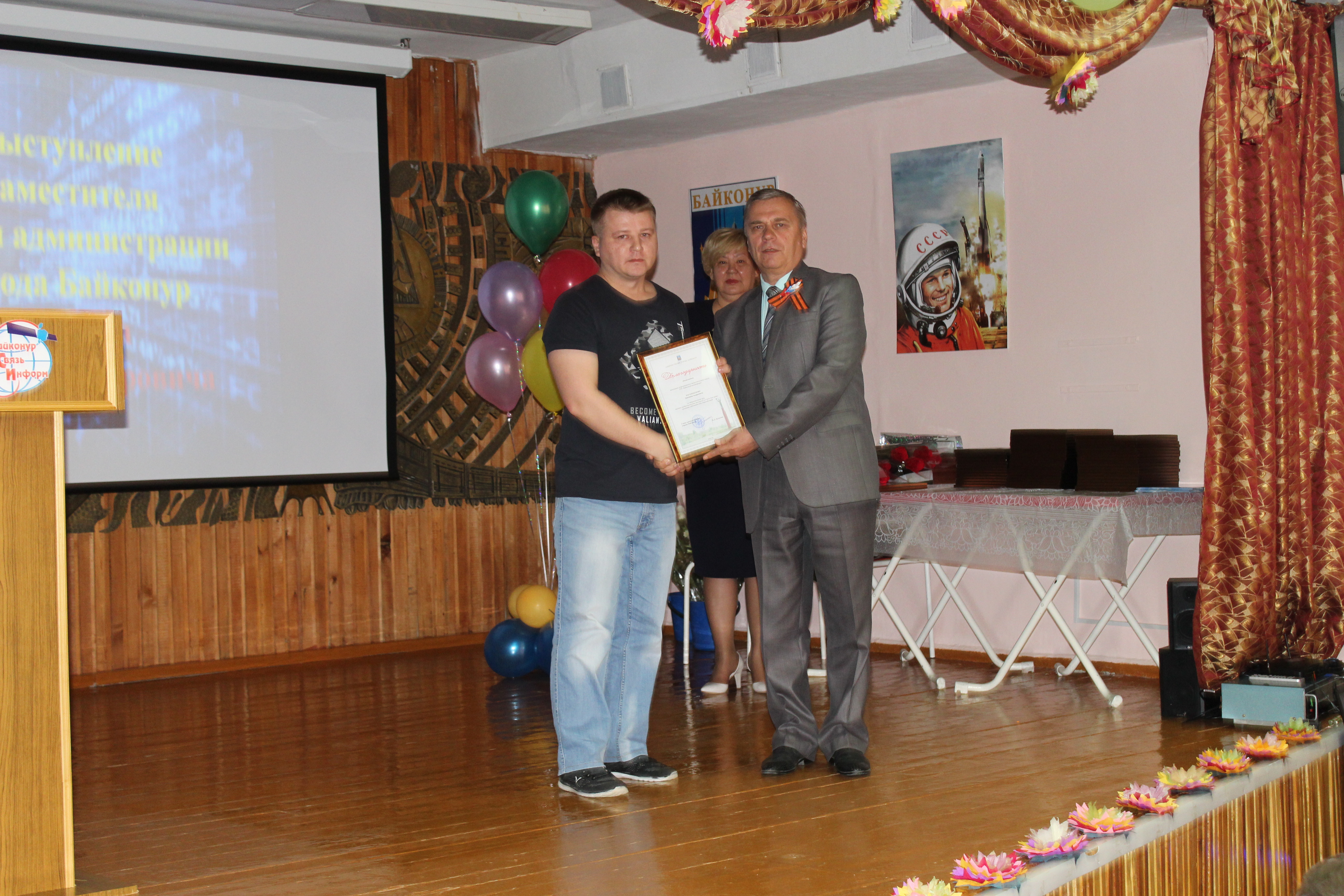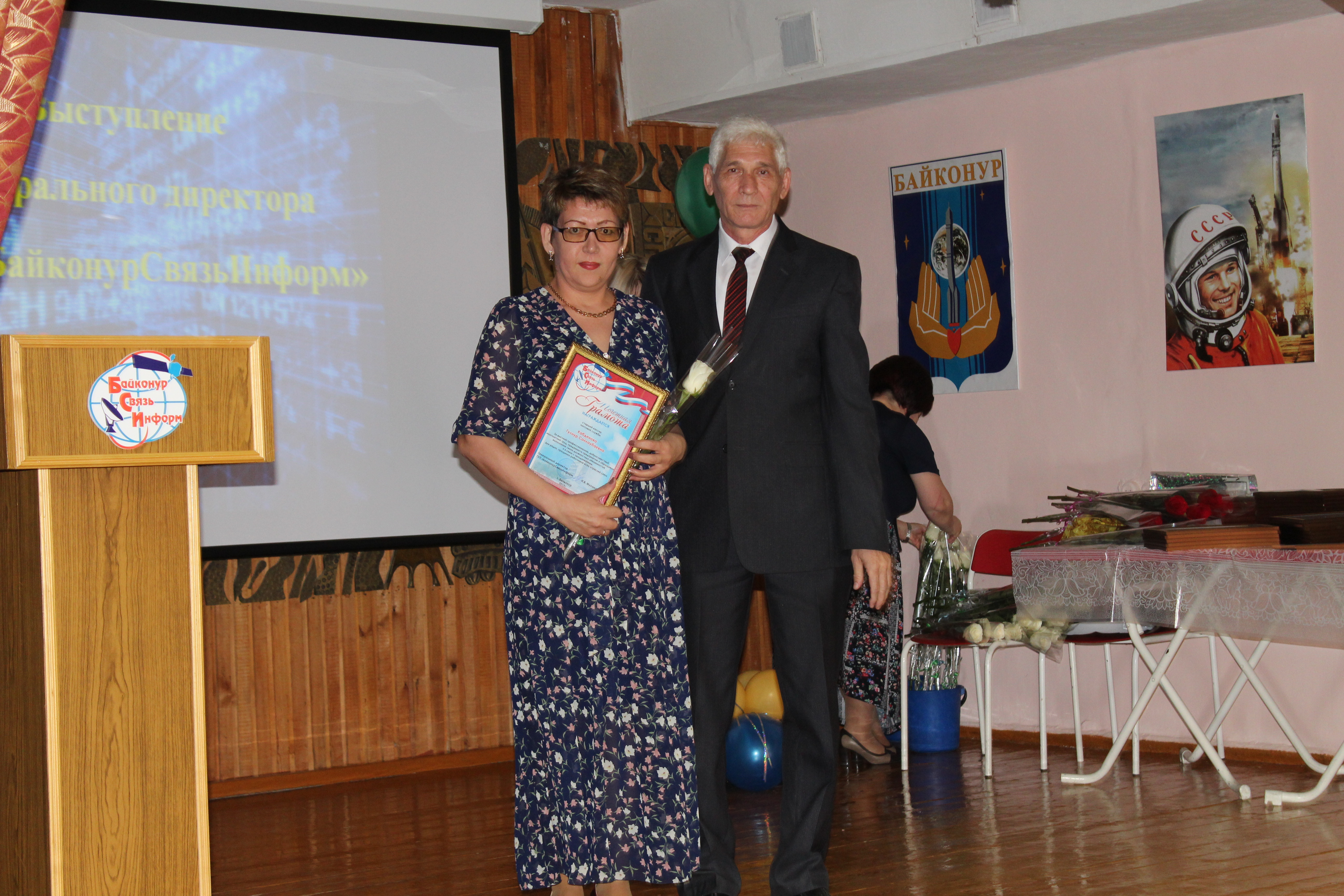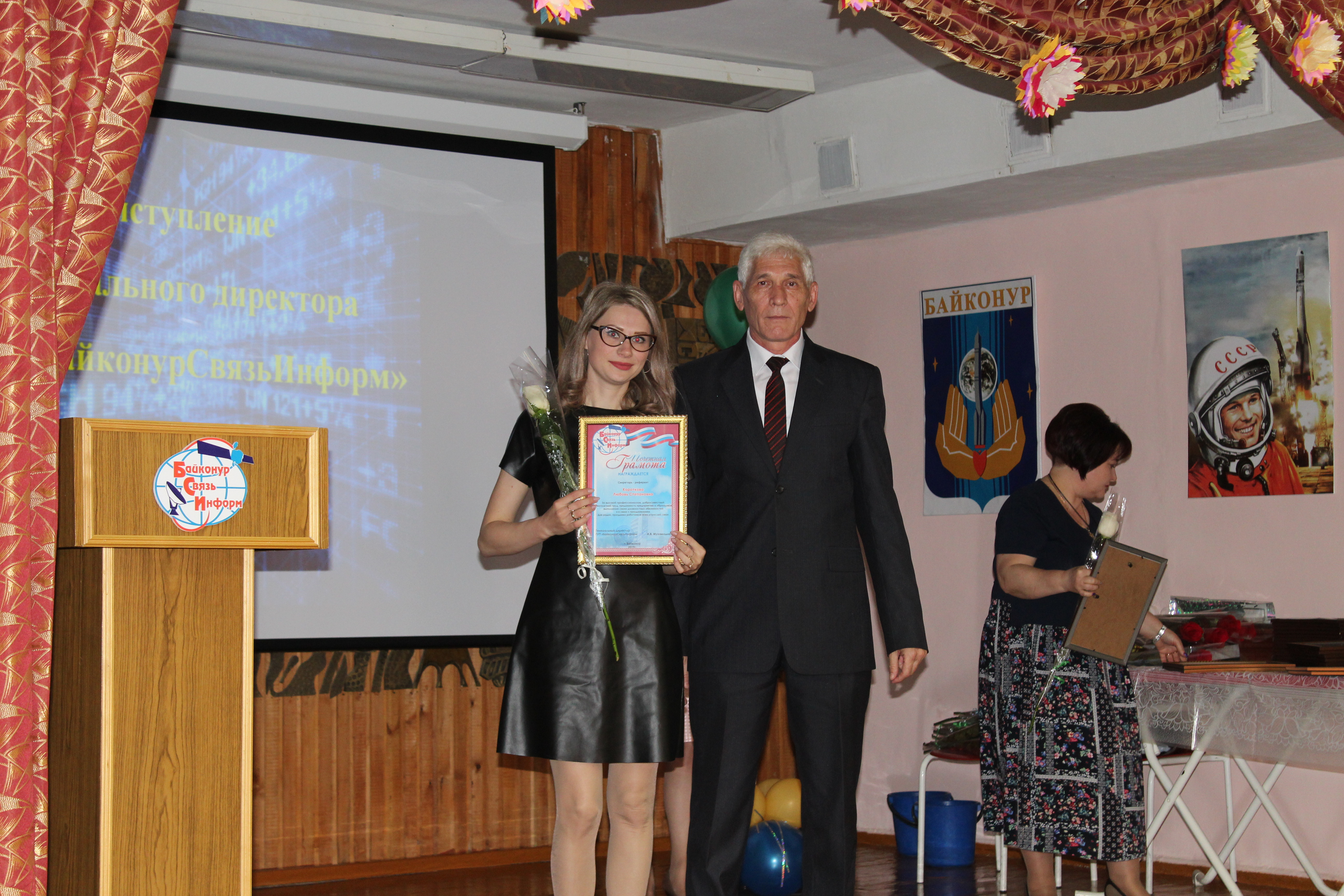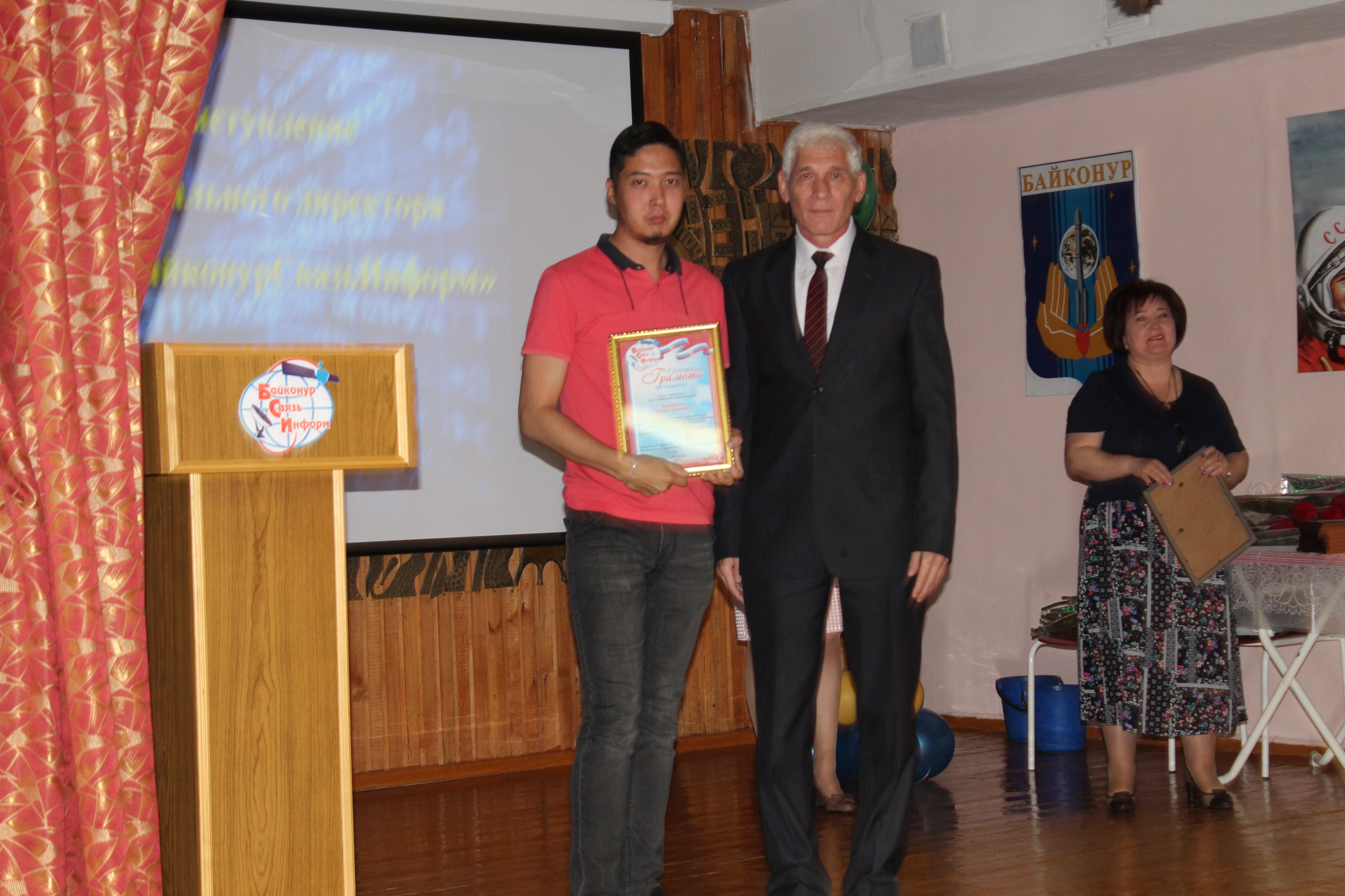 Сегодня в России отмечается День радио - праздник работников всех отраслей связи. С этой датой сотрудников предприятия "БайконурСвязьИнформ" поздравил заместитель главы городской администрации Николай Адасев. Он пожелал им дальнейших успехов в работе и вручил ряду руководителей и работников подразделений предприятия памятные медали, почетные грамоты главы администрации, благодарности и подарки. Среди награжденных - генеральный директор предприятия Идль Мухамадиев, начальник службы безопасности Марина Миллер, начальник почтовой службы Наталья Стрелкова, оператор связи центрального отделения связи Гульнар Утегенова, кабельщик-спайщик цеха автоматических междугородных, городских телефонных станций и телефонных сетей Шалбек Абдрахманов и другие.