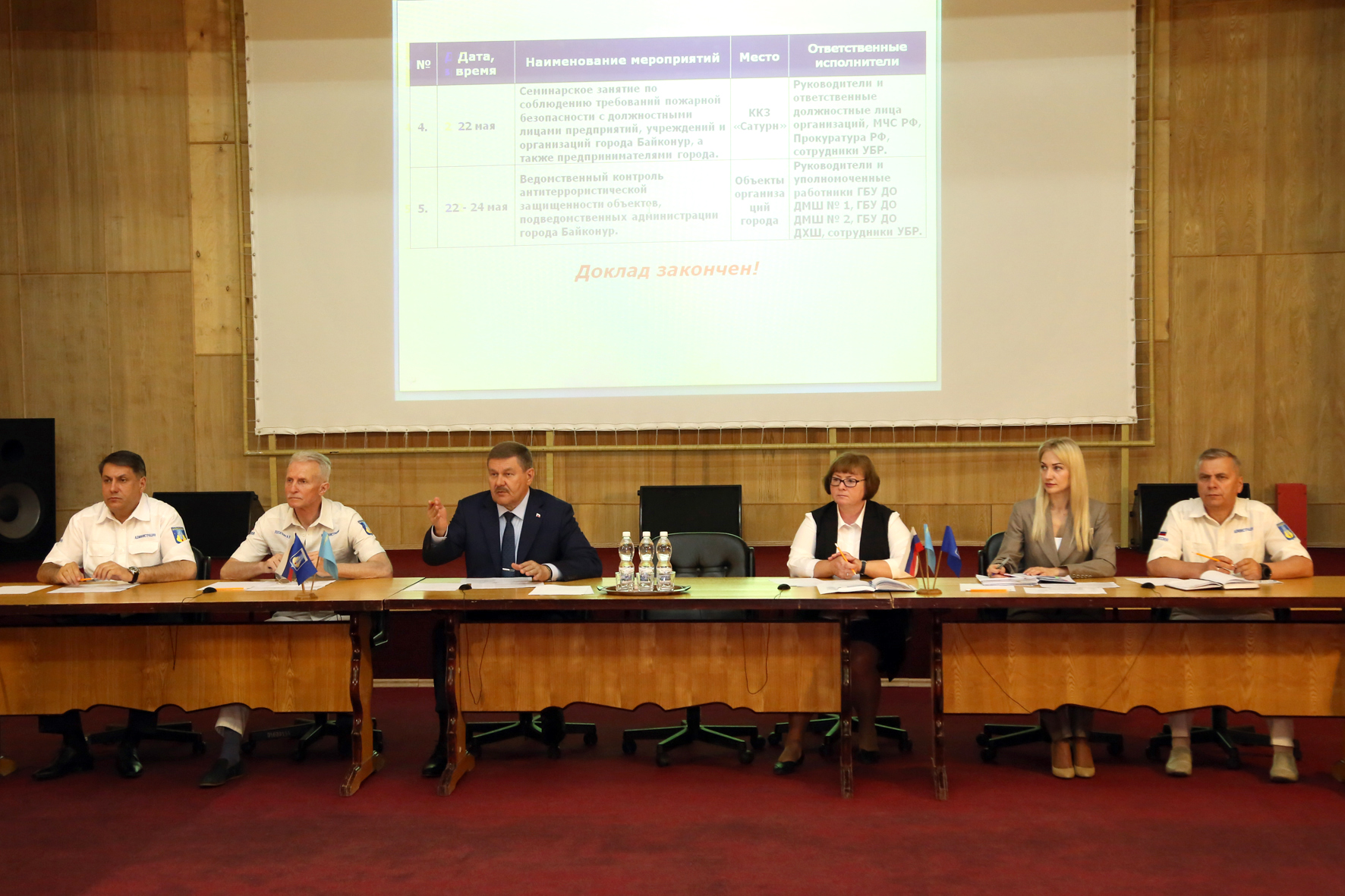 После подведения итогов недели были намечены планы на перспективу. Среди первостепенных задач на ближайший период на совещании были отмечены: обеспечение безопасности, бесперебойного электро- и водоснабжения, готовности подъездных путей при выполнении работ предприятиями Роскосмоса по подготовке к запуску ракеты-носителя "Протон" с космическим аппаратом "Ямал - 601"", намеченному на 30 мая; содействие казахстанским структурам в организации выборной кампании; проведение ряда мероприятий - праздника "Последний звонок" в образовательных организациях (22 мая - в российских школах, 25 мая - в казахстанских), концертных программ на площади Ленина (в пятницу 24 мая) и в городском парке (в субботу 25 мая).