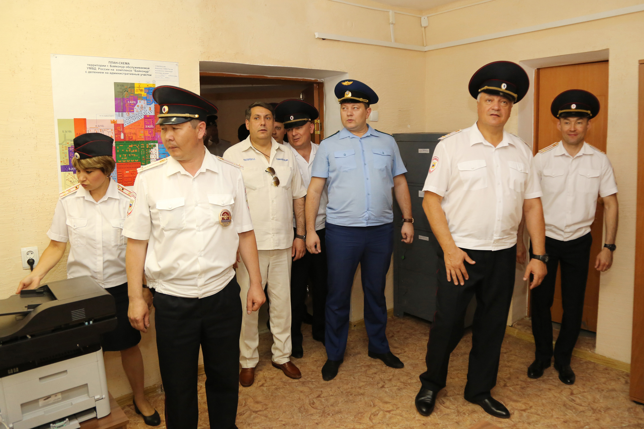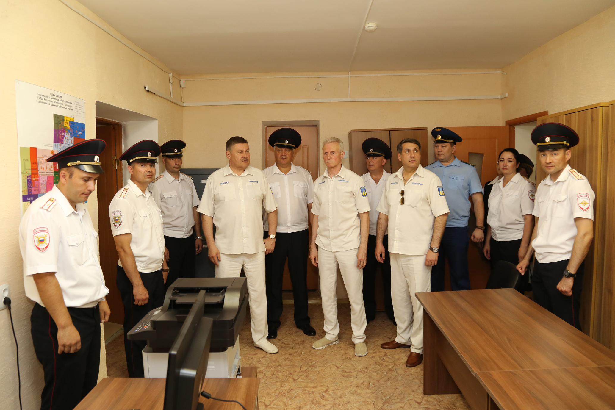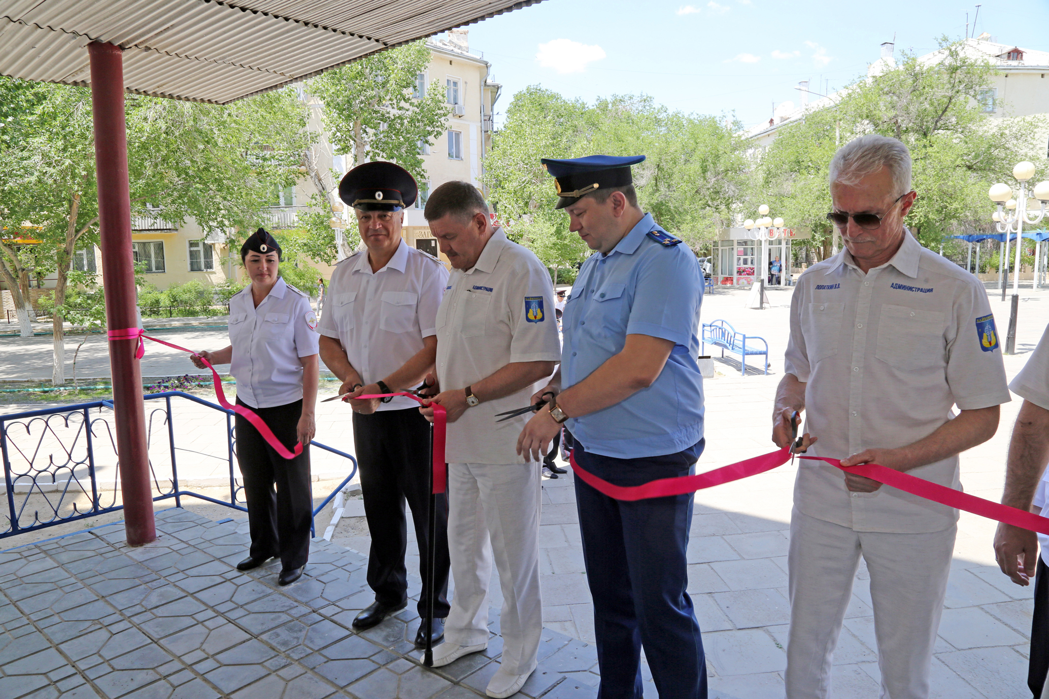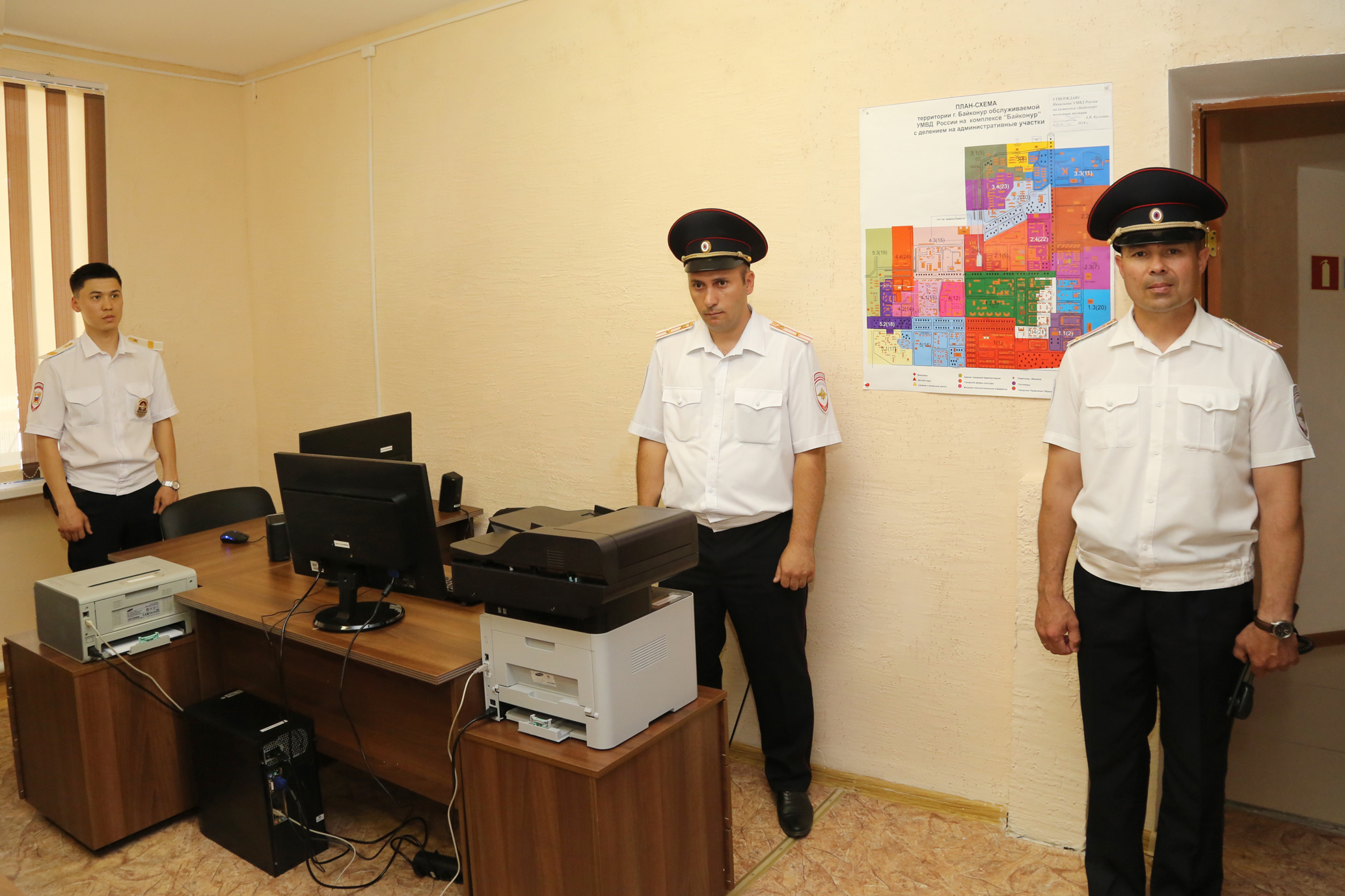 В церемонии открытия опорного пункта полиции приняли участие руководство администрации города Байконура, УМВД России на комплексе "Байконур", прокуратуры комплекса "Байконур", сотрудники отдела участковых уполномоченных полиции и по делам несовершеннолетних УМВД.