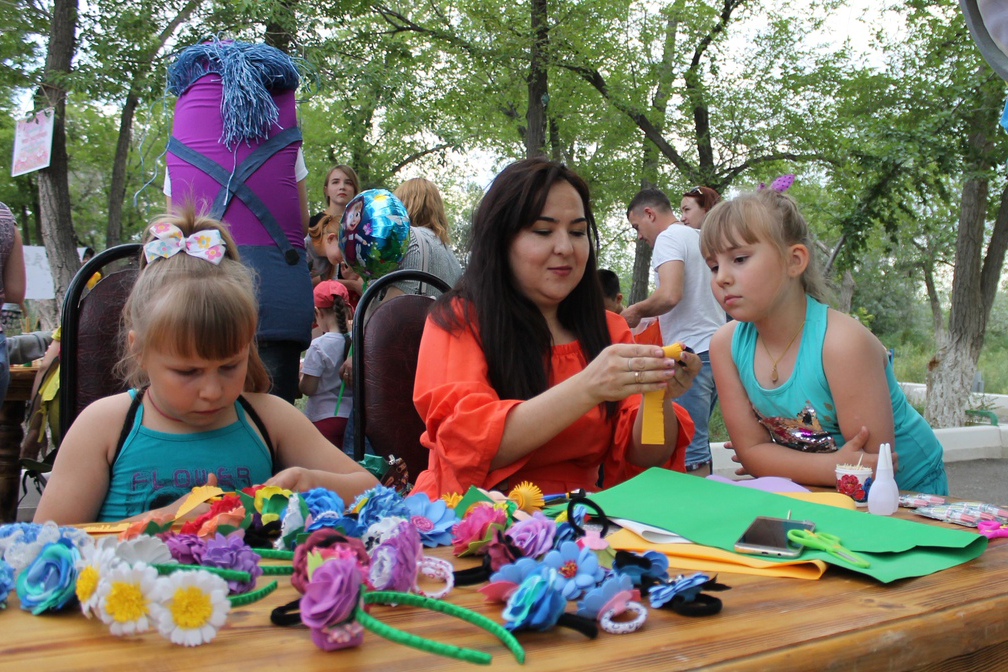 На самой тенистой аллее расположились владения Феи-мастерицы, где каждый желающий мог принять участие в мастер-классах по изготовлению цветов из бумаги, ярких украшений, ободков, заколок, тряпичных кукол. Помимо того, что у девчонок и мальчишек была прекрасная возможность научиться чему-то новому, результат своего творчества они могли унести с собой.