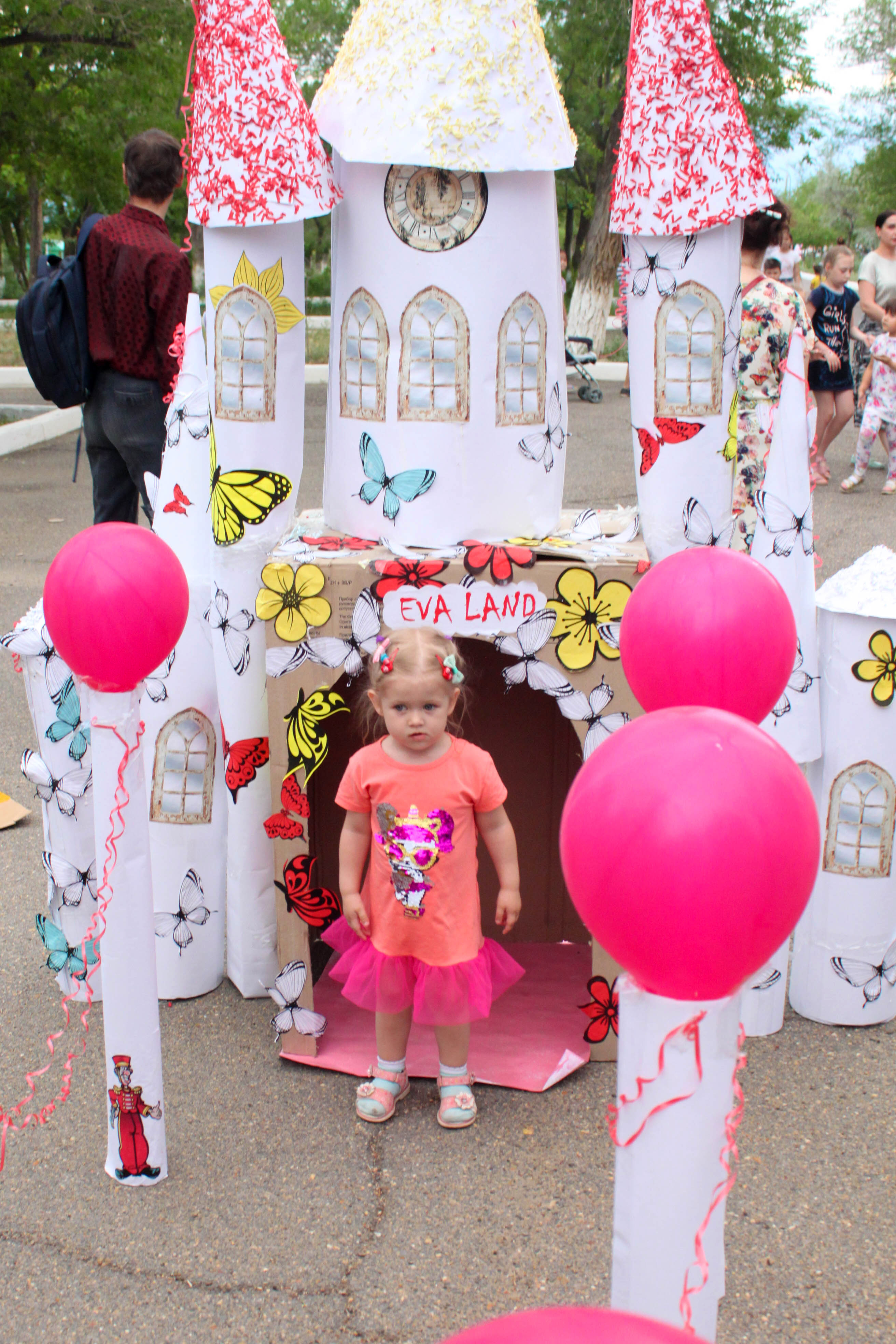 Пришедшим на праздник творческим семьям была предоставлена возможность на часок окунуться в детство и принять участие в конкурсе "Домик для принцессы". Участники конкурса, словно по волшебству, превращали обычные картонные коробки в сказочные замки и пряничные домики. Лучше всех с заданием справились семья Цветковых, занявшая два первых места с работой "Eva land" и семья Досановых с домиком "Цветочный рай". Второе место заняла семья Архиреевых, которая смастерила "Домик для сладкоежки". Остальные пять участников конкурса получили поощрительные призы от УКМПТиС.