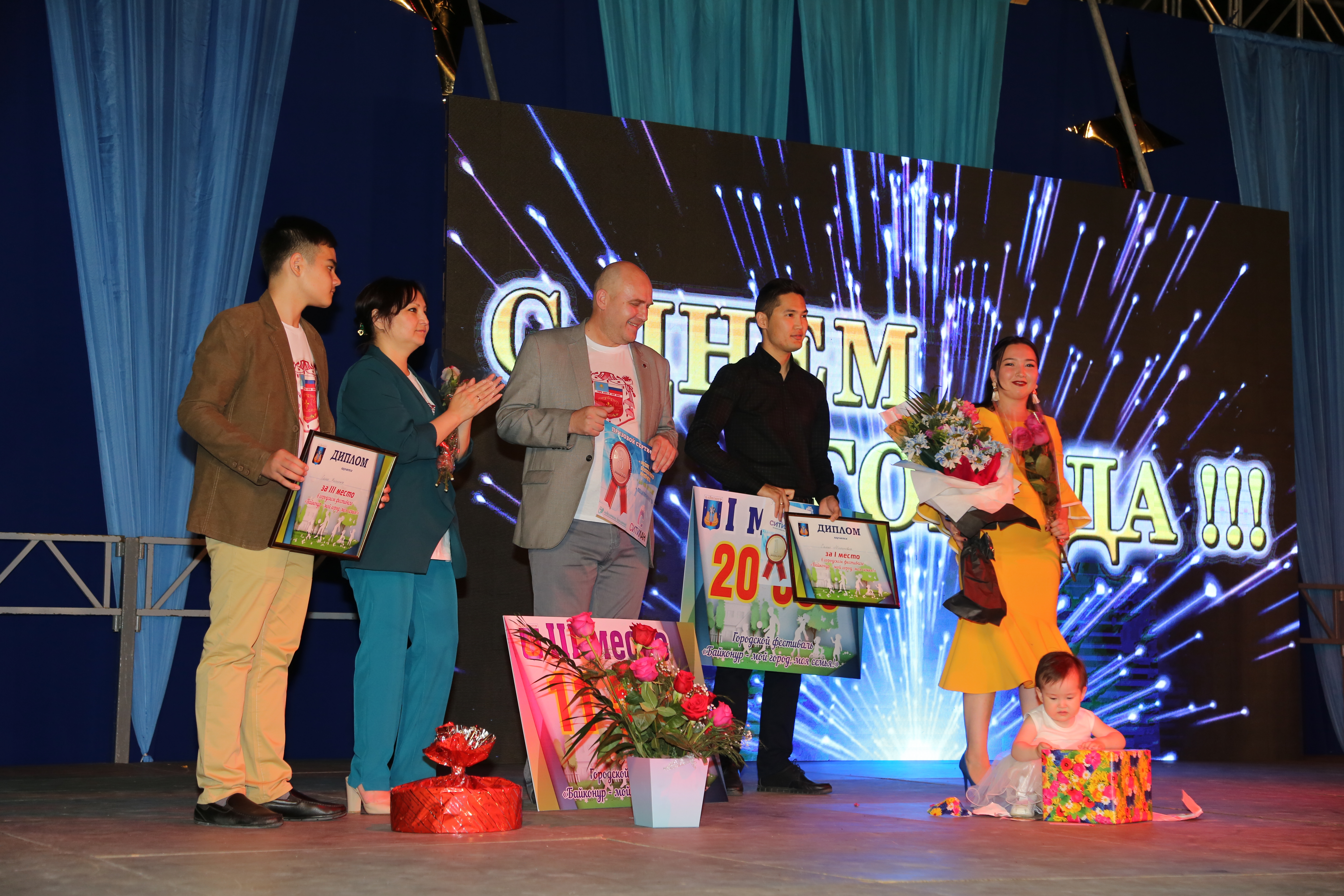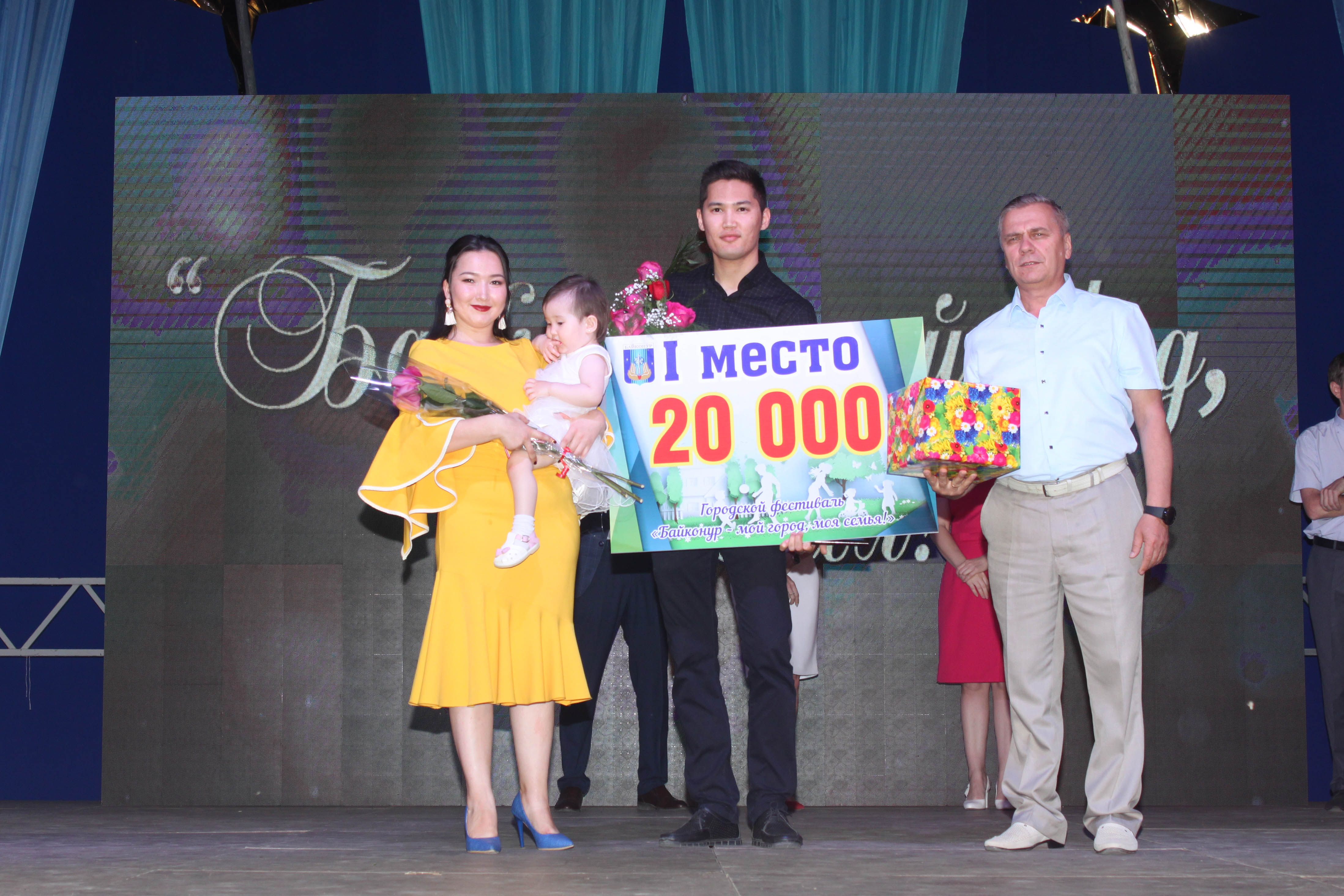 Победителем городского фестиваля "Байконур - мой город, моя семья" стала семья Махановых -Данияр, Айгерим и их двухгодовалая дочка Даная. Второе место присуждено семье Архиреевых - Максиму, Евгении и их детям Артему, Роману и Алене. Третье место заняла семья Бичиных - Юрий, Гульмира и их сын Сергей. Все они были награждены ценными подарками и денежными премиями от учредителей и спонсоров фестиваля.