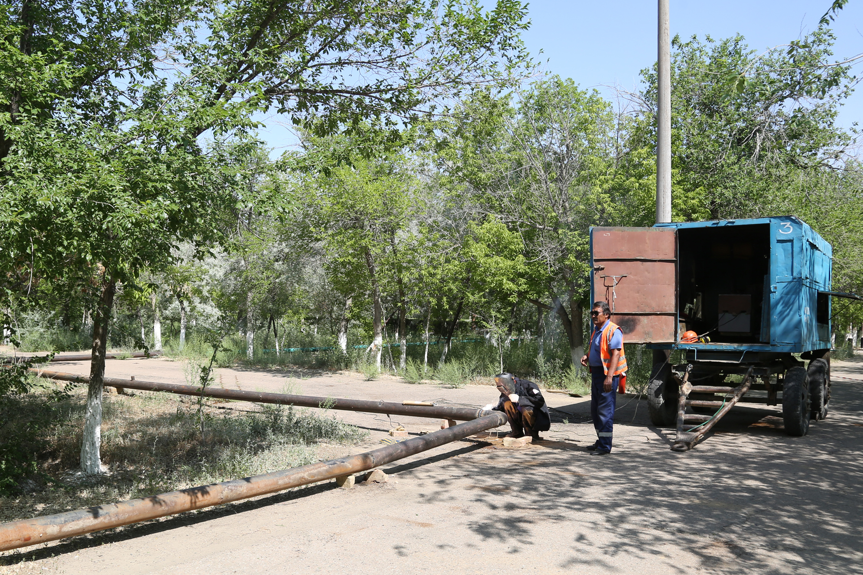 Сотрудники предприятия Горводоканал проводят ремонтно-восстановительные работы системы полива зеленых насаждений. Работы ведутся на проспекте Королева и улице Горького.