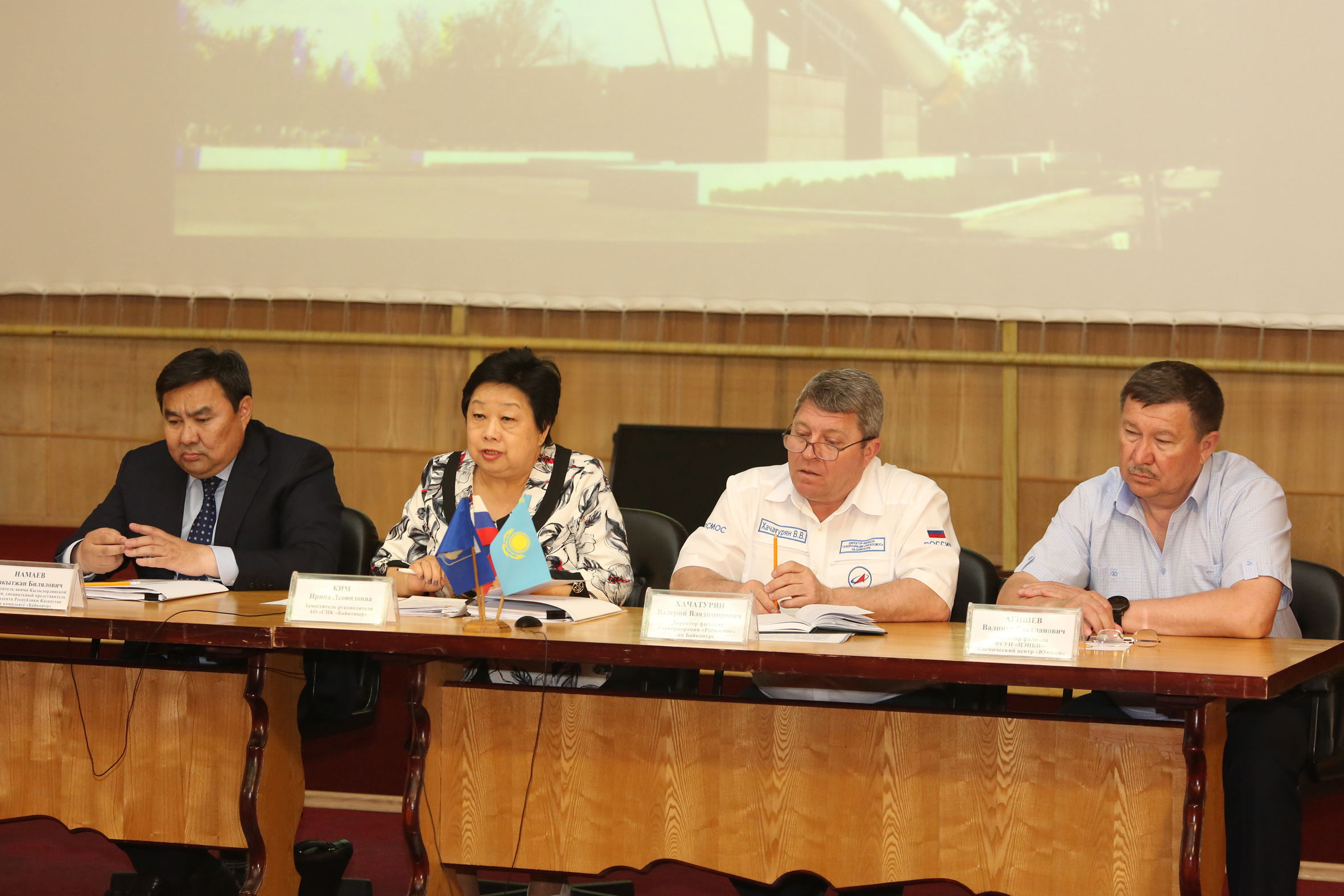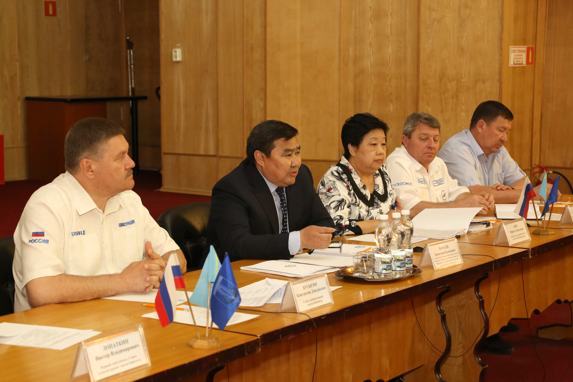 На встрече от российской стороны присутствовали: глава администрации города Байконура Константин Бусыгин и заместители главы, директор филиала Госкорпорации "Роскосмос" на Байконуре Валерий Хачатурян, директор филиала ФГУП "ЦЭНКИ" - "Космический центр "Южный" Валинур Агишев, руководители ряда управлений и отделов городской администрации. От казахстанской стороны: заместитель акима области, специальный представитель Президента Республики Казахстан на комплексе "Байконур" Бакытжан Намаев, заместитель руководителя АО "СПК "Байконыр" Ирина Ким, руководители ряда управлений и департаментов областного и районного акиматов.