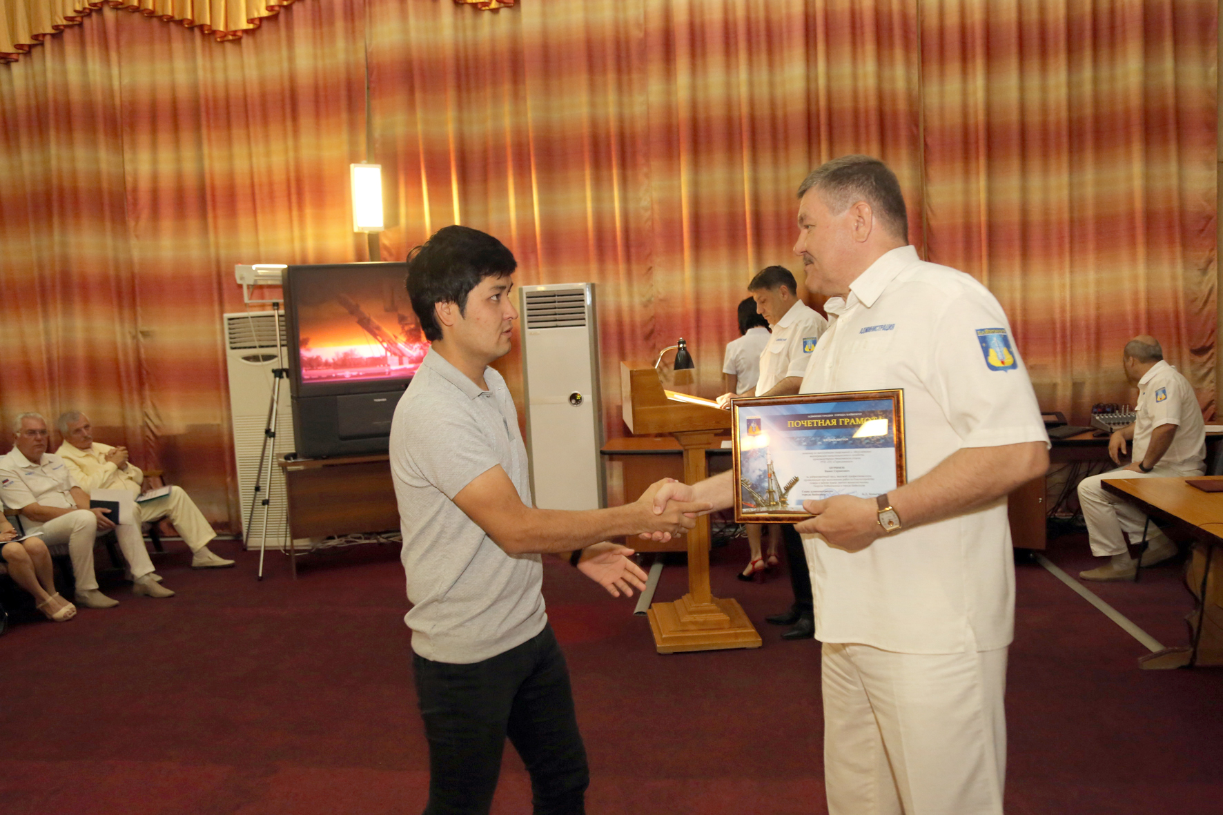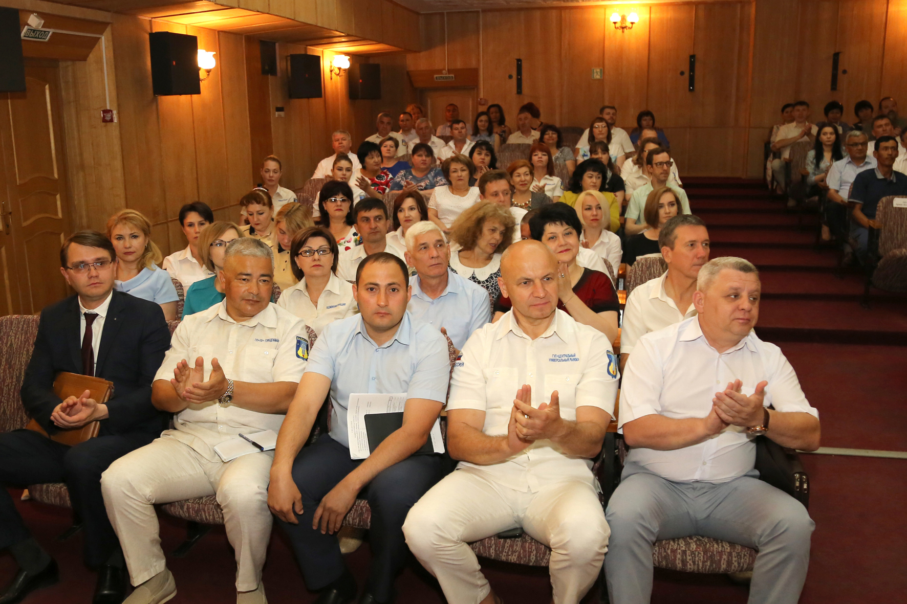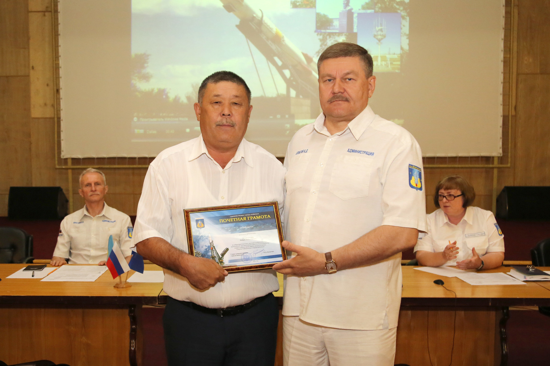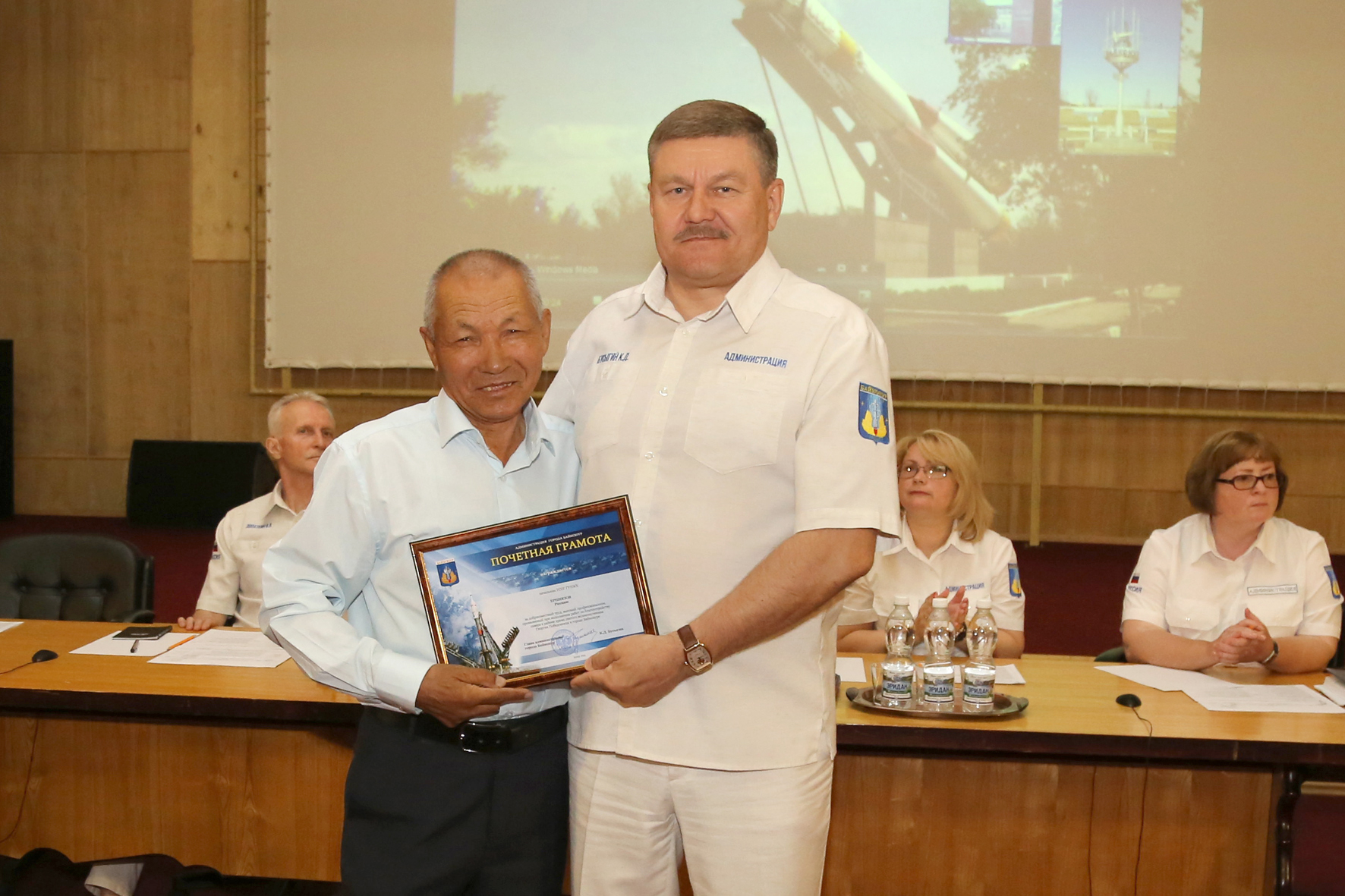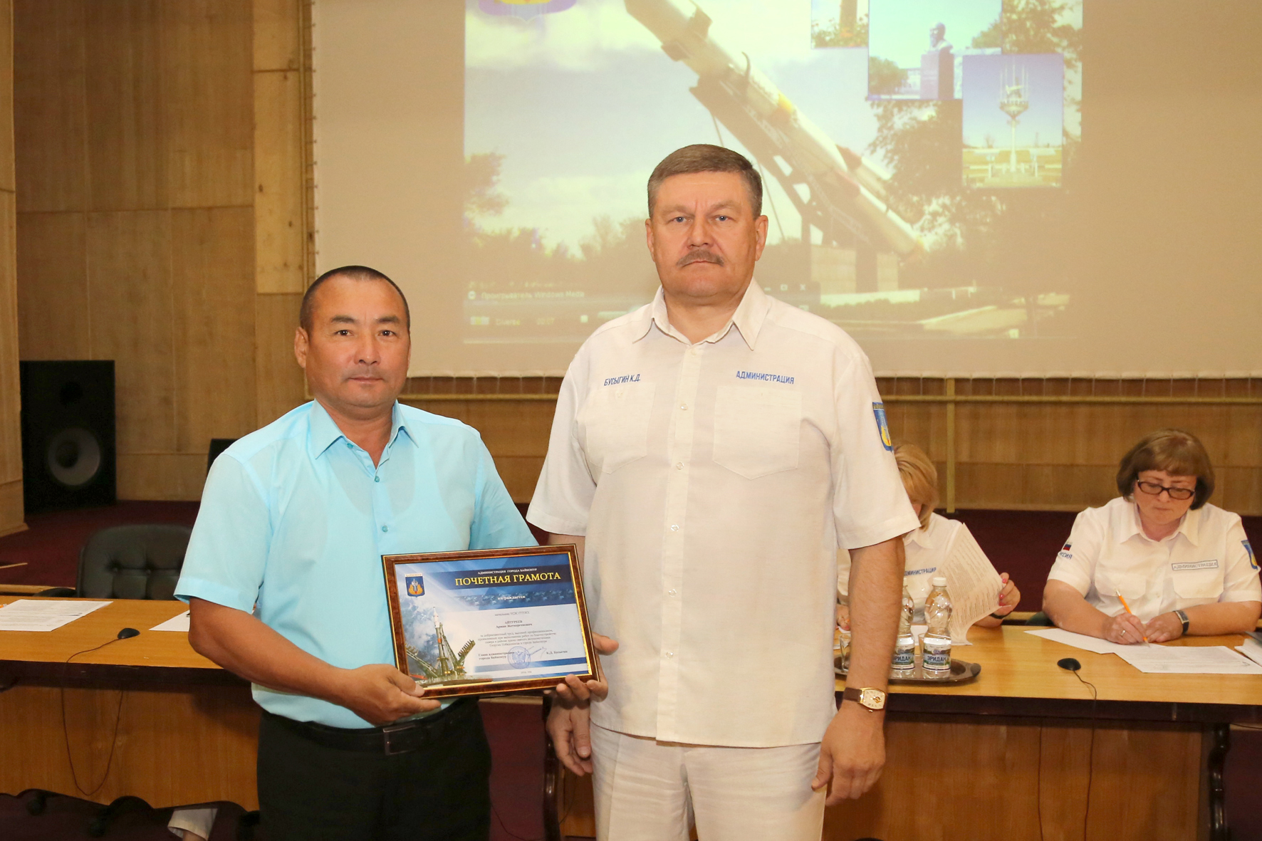 В начале совещания состоялось чествование сотрудников предприятий Жилищное хозяйство (ГУП ЖХ) и Горводоканал, принимавших участие в работах по благоустройству сквера в районе православного храма. За добросовестный труд почетными грамотами и благодарностями главы администрации, а также подарками награждены руководители управлений, мастера и рабочие ГУПЖХ и Горводоканала. Настоятель храма святого великомученика Георгия Победоносца Отец Сергий вручил руководству ГУПЖХ и Горводоканала грамоты от городского прихода.